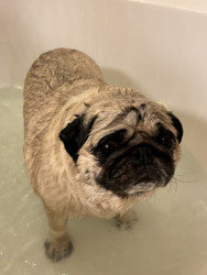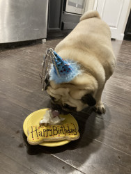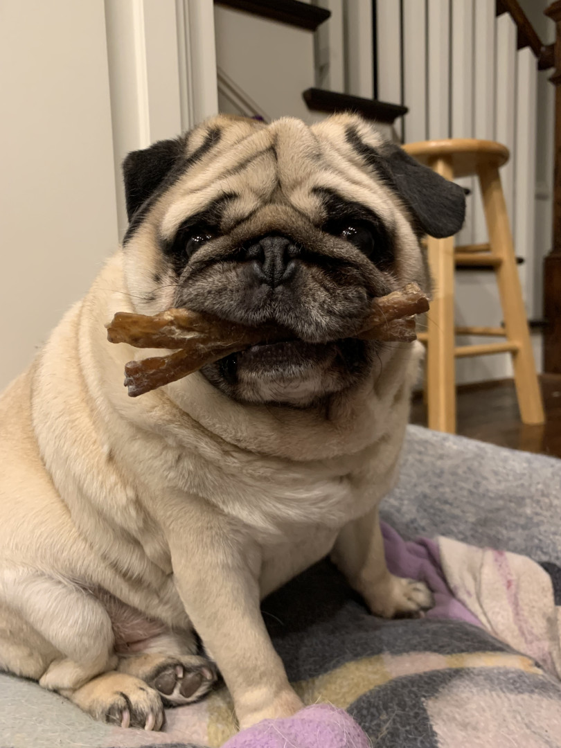 Wolfie is the typical and most perfect pug. He loves to sleep, go on walks, and eat. He is very stubborn but also very smart.