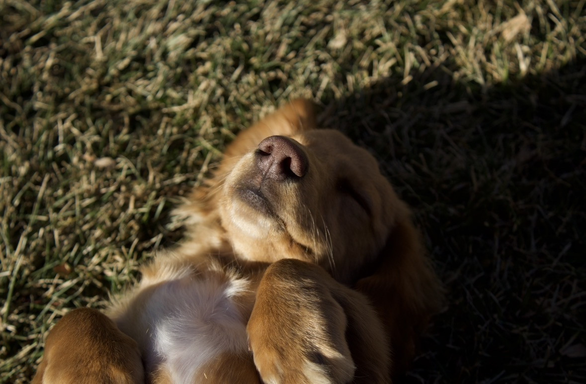 Woodys way of greeting people is sliding onto his back to ask for belly rubs.