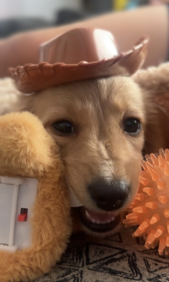 Woody is a long haired miniature dachshund. He is named after Woody from Toy Story. He's the best sheriff in town.