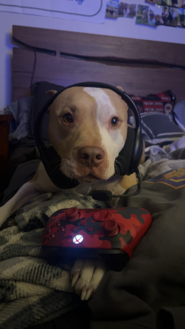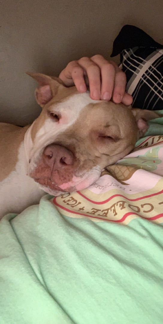 Woody he’s an older dog but the sweetest boy in the whole world ! Big pitbull but is the biggest baby loves cuddles,belly rubs and attention