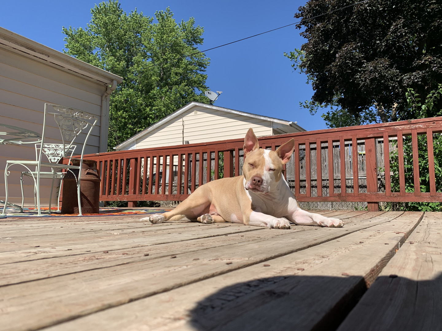 Woody comes from a pound. We got him when he was two years old and nothing but bone now he’s the chunkiest, most playful and happiest dog alive.