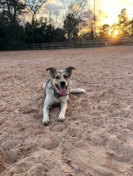 Wrangler is the most respectful and well-mannered dog I have ever owned. Between the way he makes everyone smile with his own goofy smile to the silly games of tag or hide and seek that he loves to play with little kids, Wrangler never fails to bring joy to everyone's hearts! He loves having attention and will let you know when he is not getting enough, and he loves a good competition!