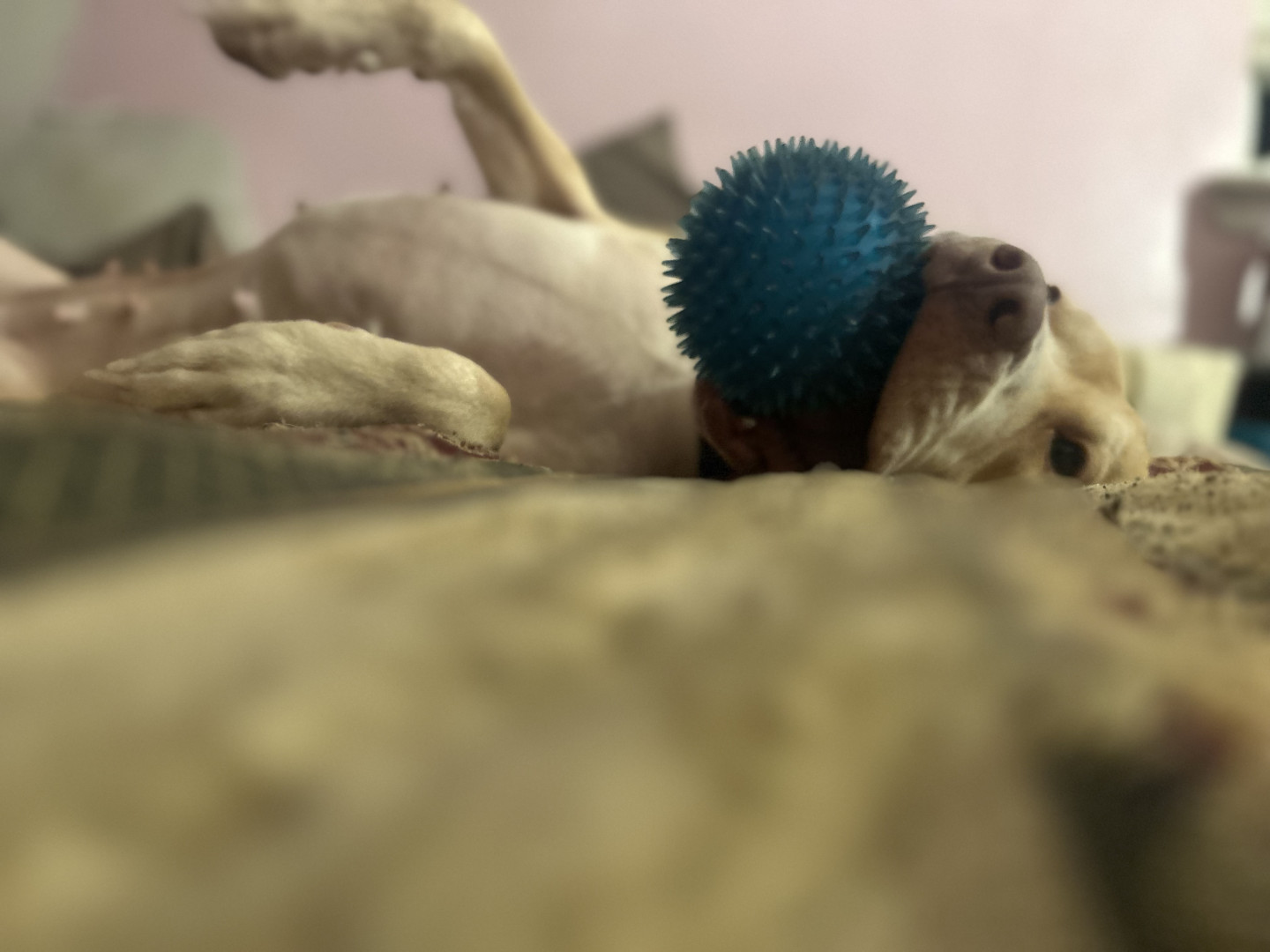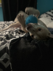 xena is energetic, sweet, loves walks, chicken, socks, her ball, and cuddles