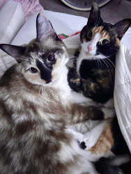 Yama and Kemuri are sisters from the same litter. They’re cuddly and adorable and know how to use their cuteness for good (or is it evil?)