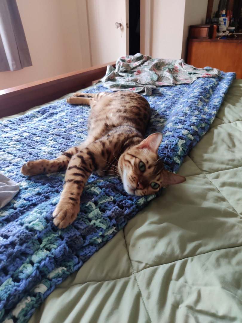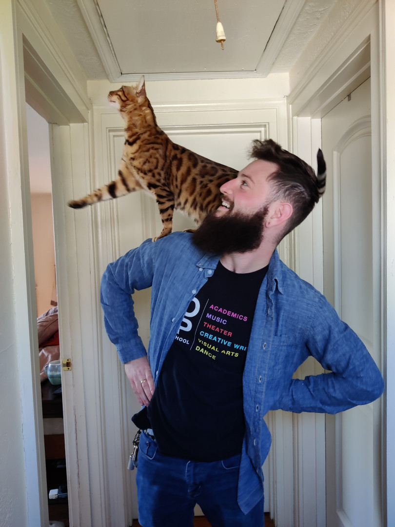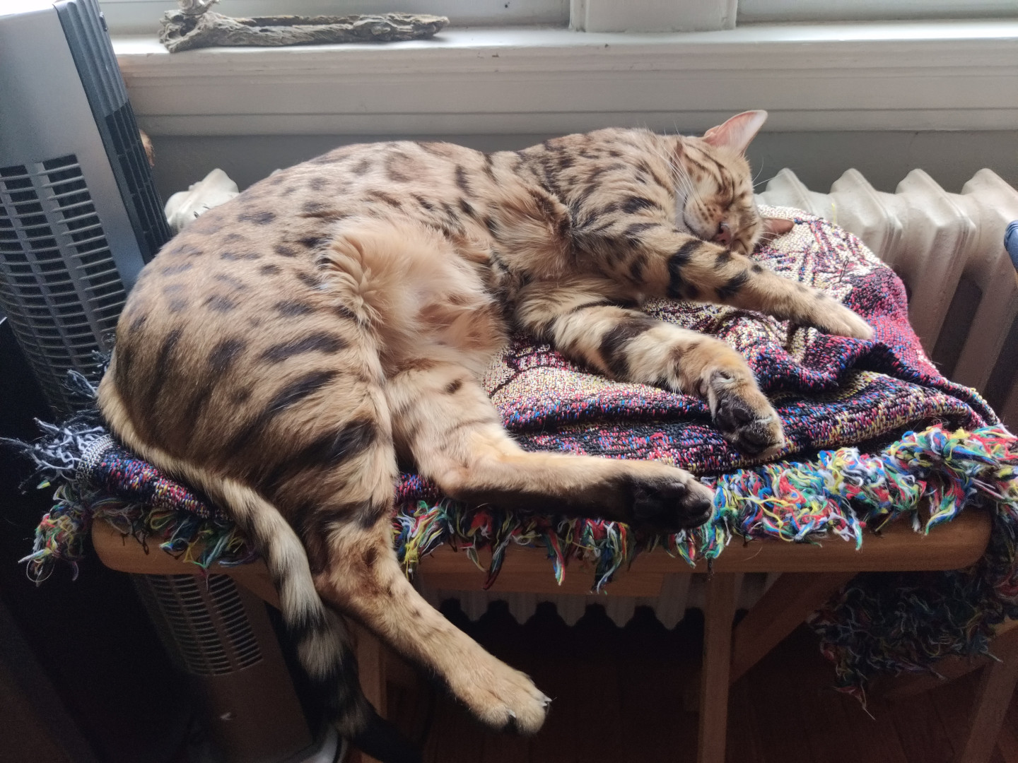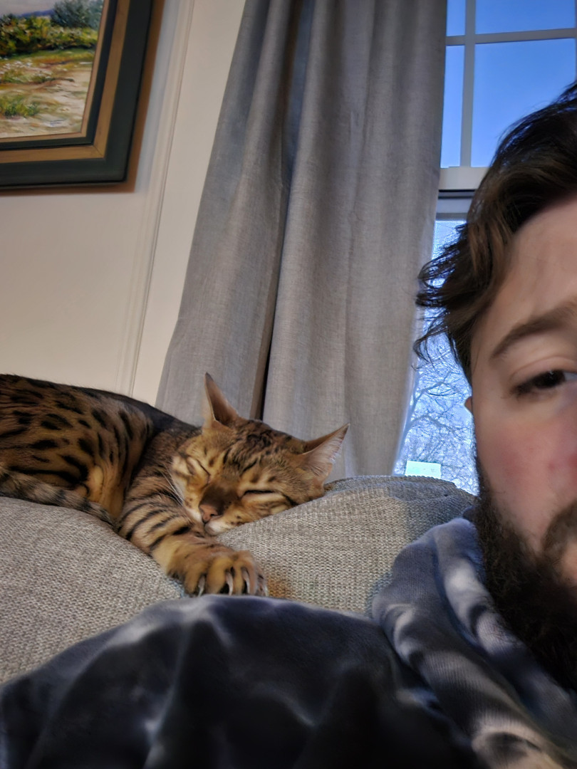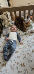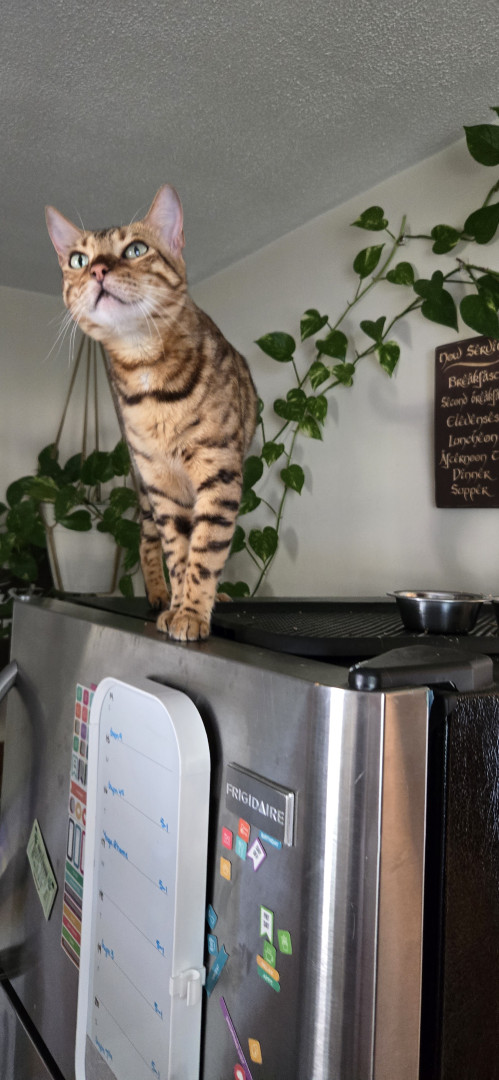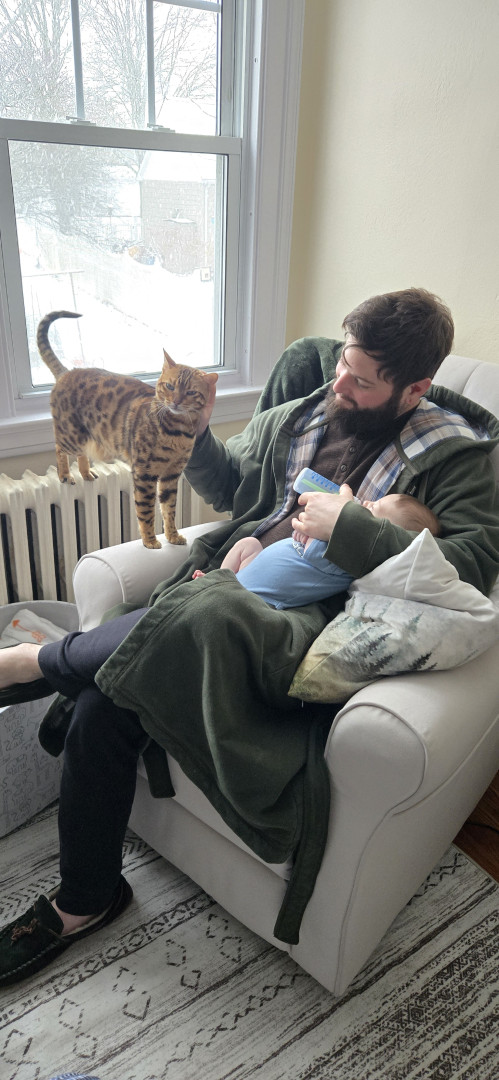 Yobo is a Bengal with a big heart. He loves to cuddle, perks up every time the LOTR theme song plays, and proudly keeps watch over our son.