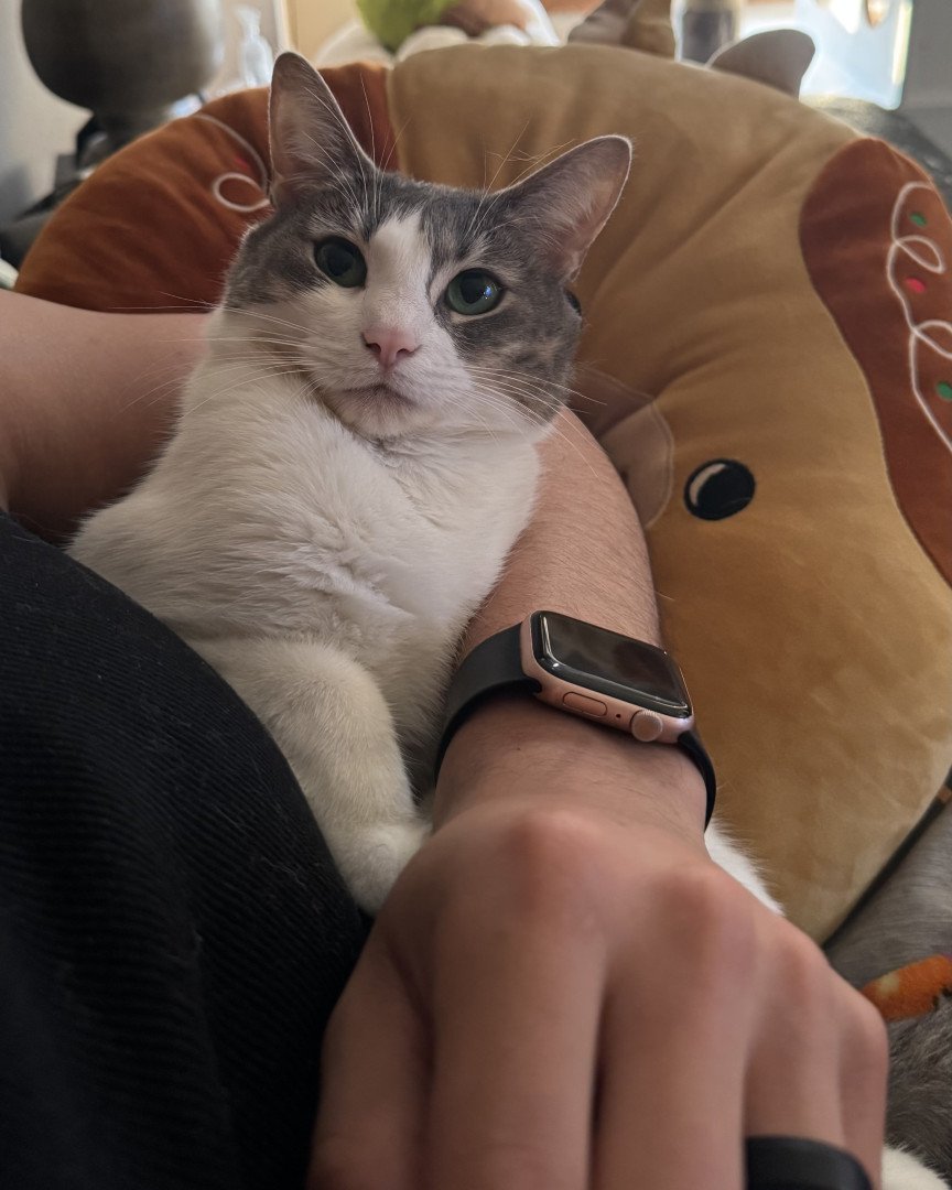 Yoda is the sweetest kitty ever. She loves people, loves to play, and loves to cuddle. She is very smart and loves to communicate with her humans. She wouldn’t even hurt a bug. She would rather watch the bug. She also has the sweetest, kindest, prettiest face ever and I’m just obsessed with her.