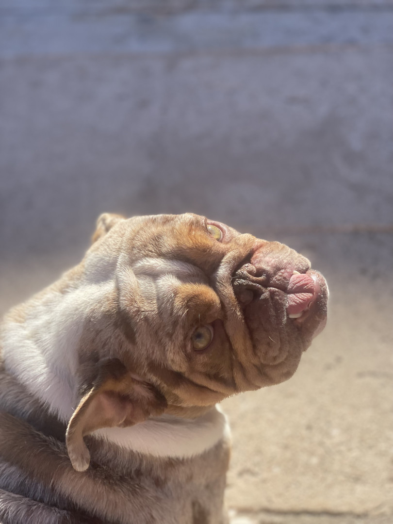 Yoda is a cuddly, sweet and food lover puppy. He is a lilac mini English bulldog and he is also 1 years old as of October !