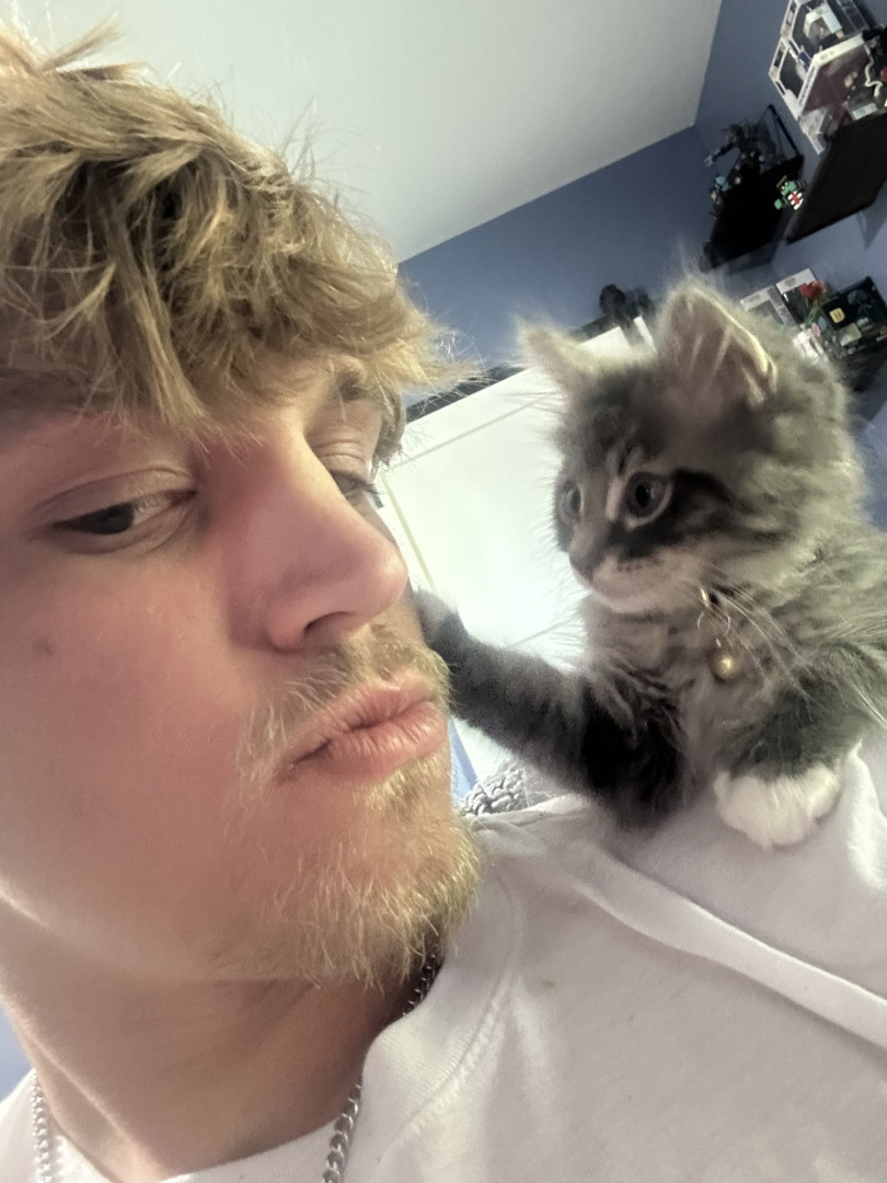 His bright blue eyes, fluffy tail like a squirrel, and always knows when you need loving. Also has his own special way of using the litter box, dm me if you’d like to see how😂