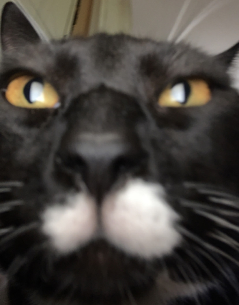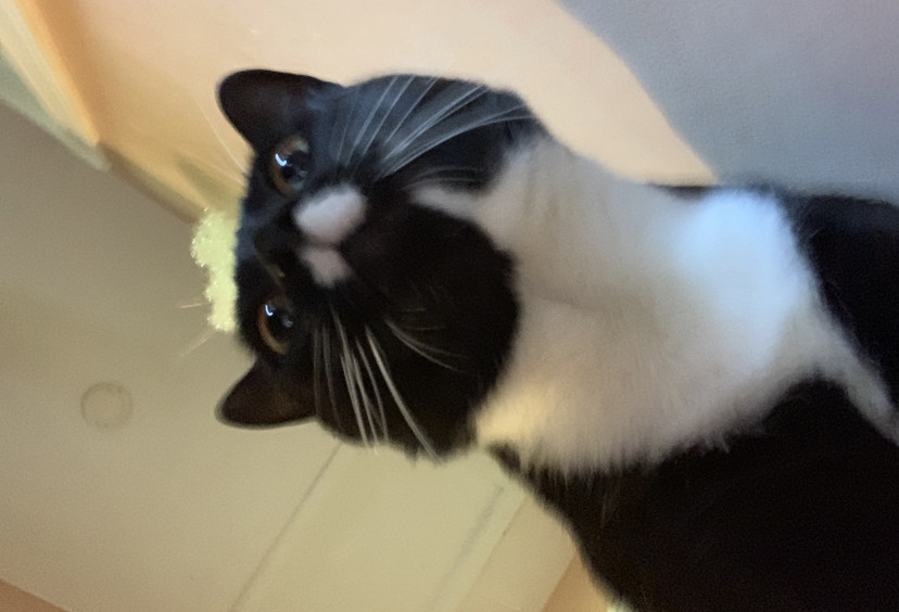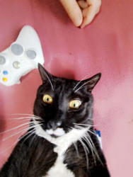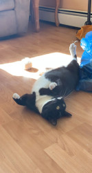 He’s a big loaf of love with sass, he loves to laze around and eat, or watch cat tv on the big screen.