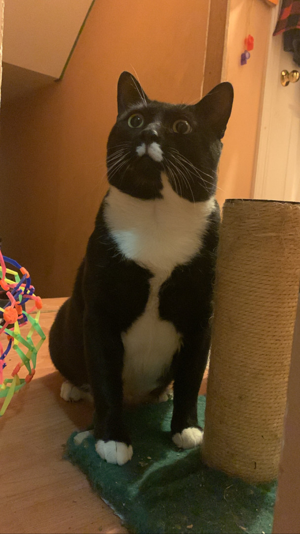 He is quite sassy, but with routine. He doesn’t joke about his food. He is very picky and will pick out certain pieces of his food to eat first!