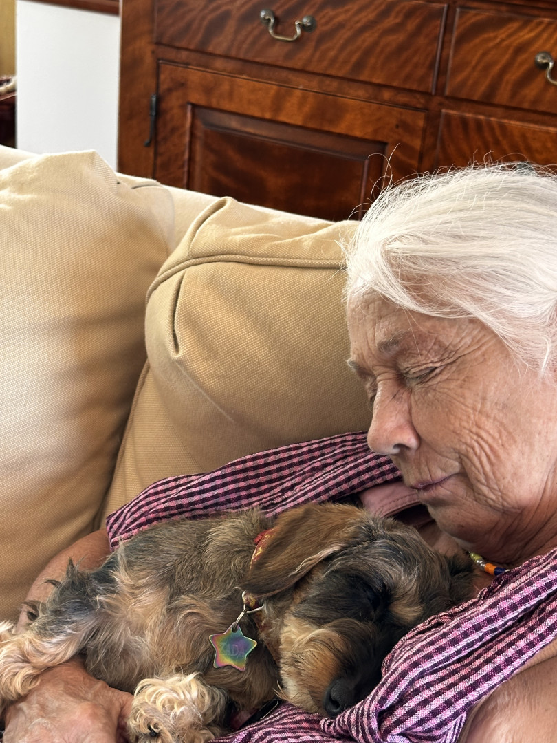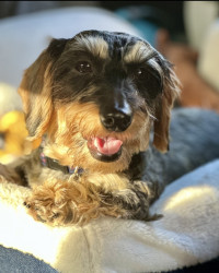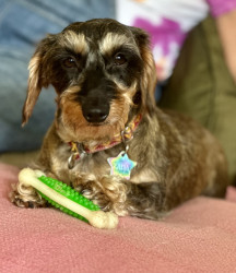 Crazy, wonderful, playful, snuggler! Loves her treats, car rides and the farm. Shes very curious and loves to do zoomies on the farm!