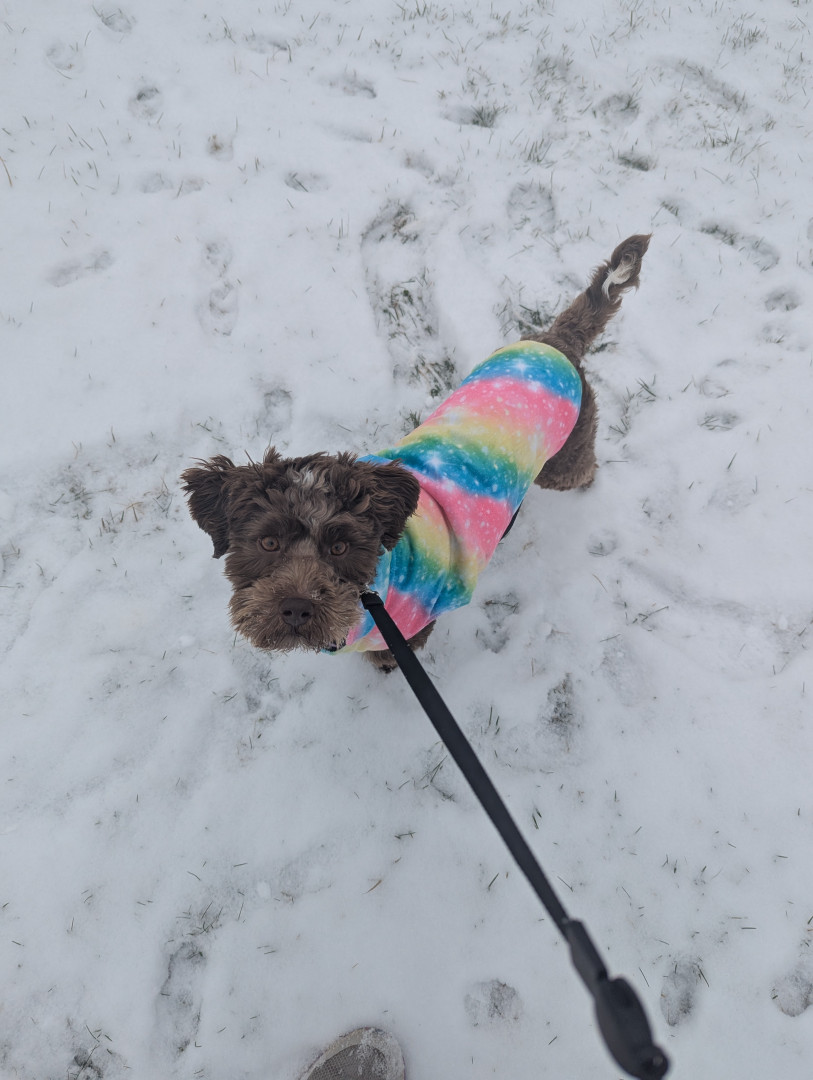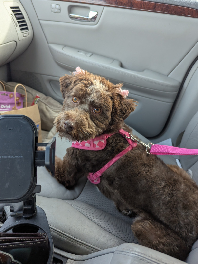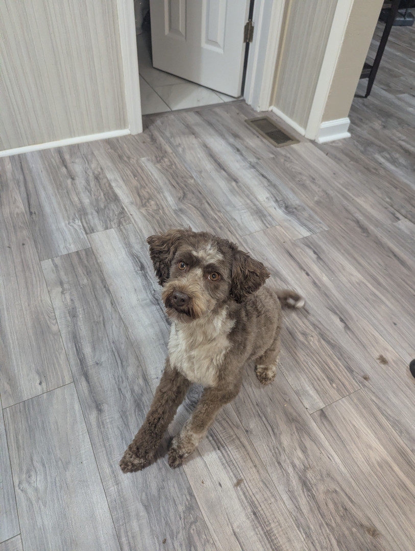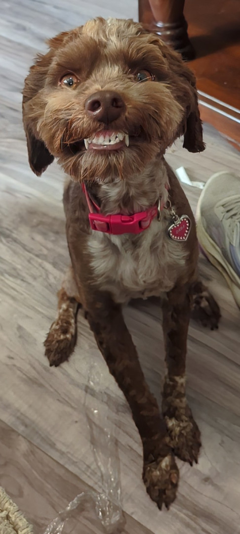 Zara is a mini aussiedoodle. She's been through so much, it's amazing at how smart and kind she is.