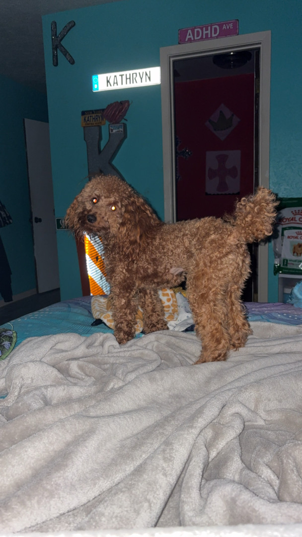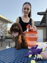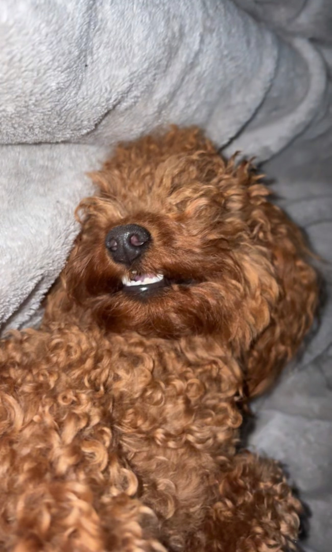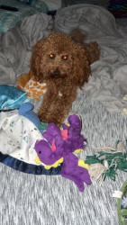 My dogs is a small, apricot puppy, with long floppy ears that frame and irresistible sweet face! She’s curious and always ready to cuddle!