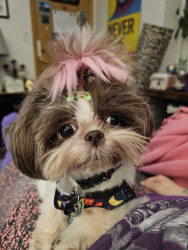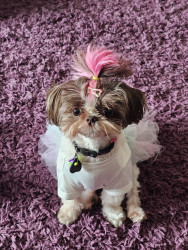 Zara is a Two year old Tea cup Shitzu & my Emotional support pet.She is only 5 pounds Full grown, but has a Bark that could wake the dead!