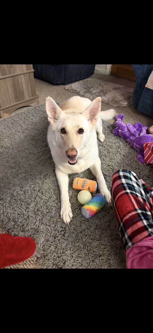 Hi, my name is Zarah and I am a Swiss German Shepherd from Alabama! I love to go on walks, play with my ball, and cuddle with my family!