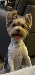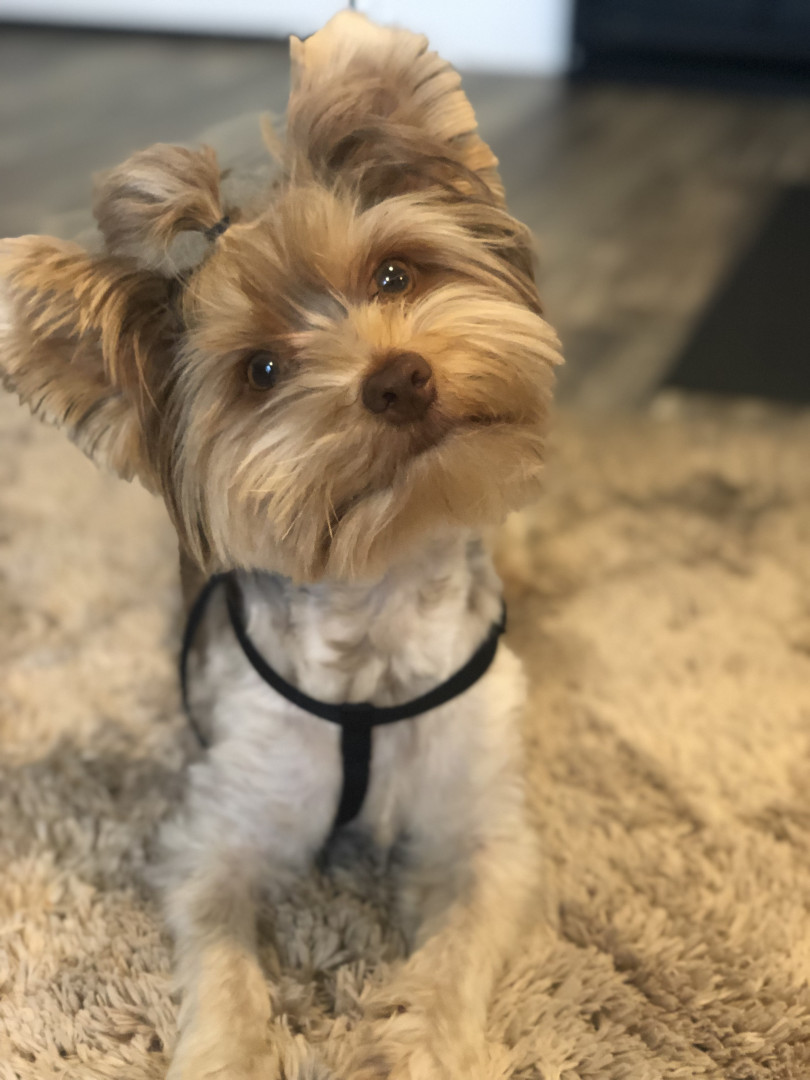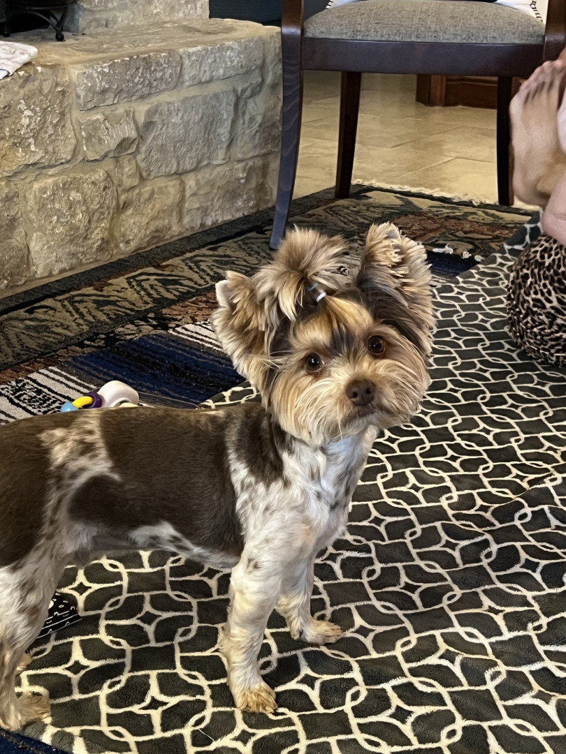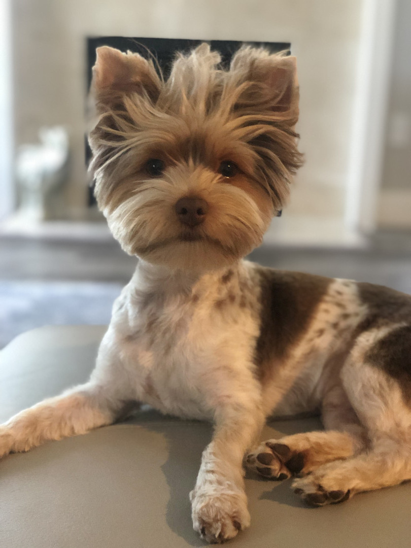 He doesn't have the typical tri-color coat. He does not have the black color in his coat, just the tans and whites. He loves to have his hair brushed and braided or put in a top knot.