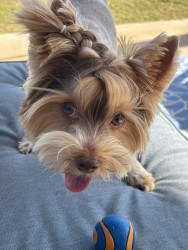 Zeke should be America's Favorite because he offers loyalty, affection, and companionship. He greets with joy, provides comfort, and offers emotional support. He brings joy and teaching responsibilities to his sister. Zeke has provided therapeutic benefits and promotes healing and wellness with my ongoing chronic Vertigo illness. His adaptability to thrive on routine makes him a perfect partner for daily activities and exercise.