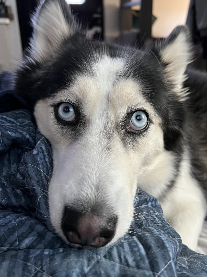 She’s a lovable cat dog, more so cat I’d say lol. She’s loyal, loves little kids, has her favorite people and she’s not afraid to show it. She’s super soft, fluffy and has pretty blue eyes that look into your soul.