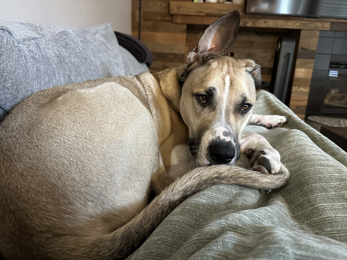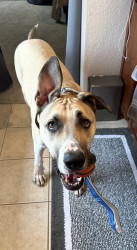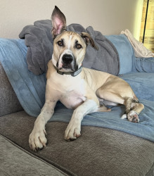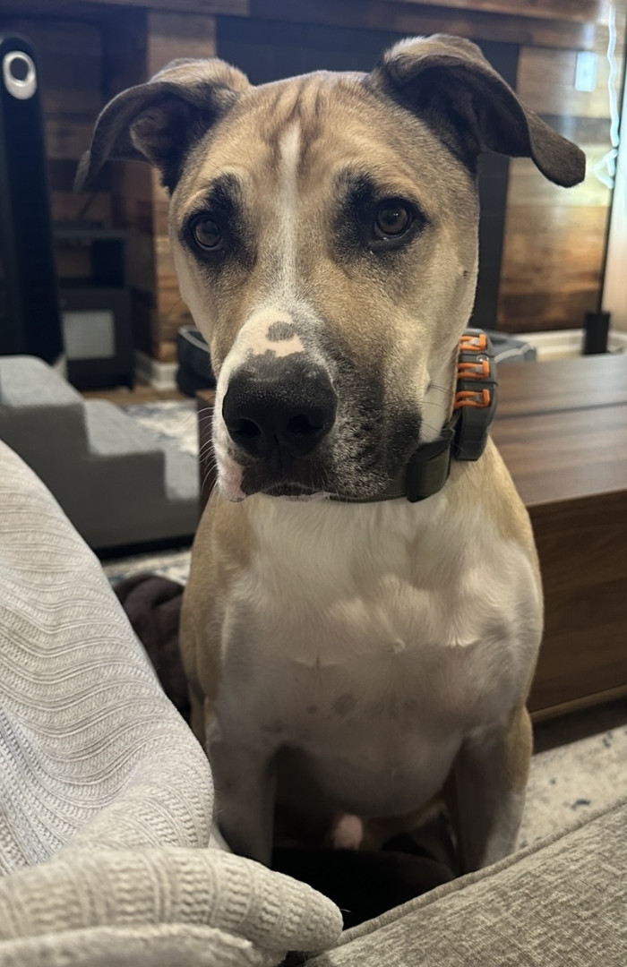 Zeno—a two year old rescue. He’s a goofy lovable guy who has one ear up and two if he’s feeling mischievous! He’s the ultimate cuddle bug.