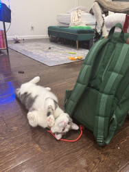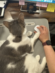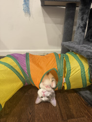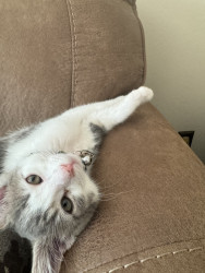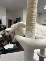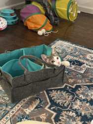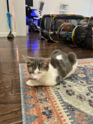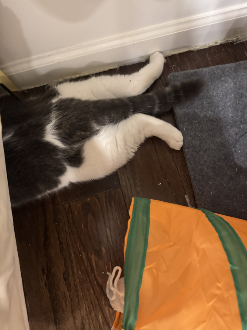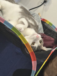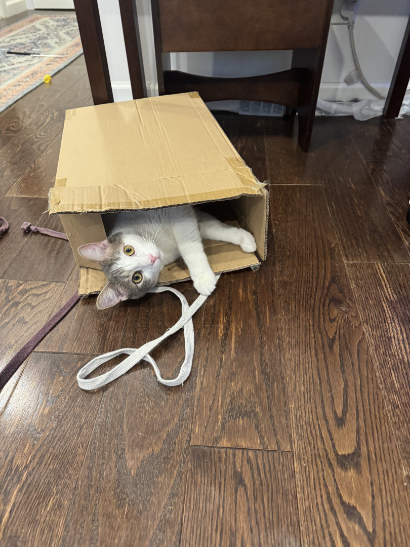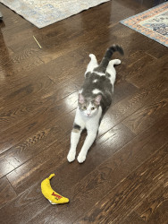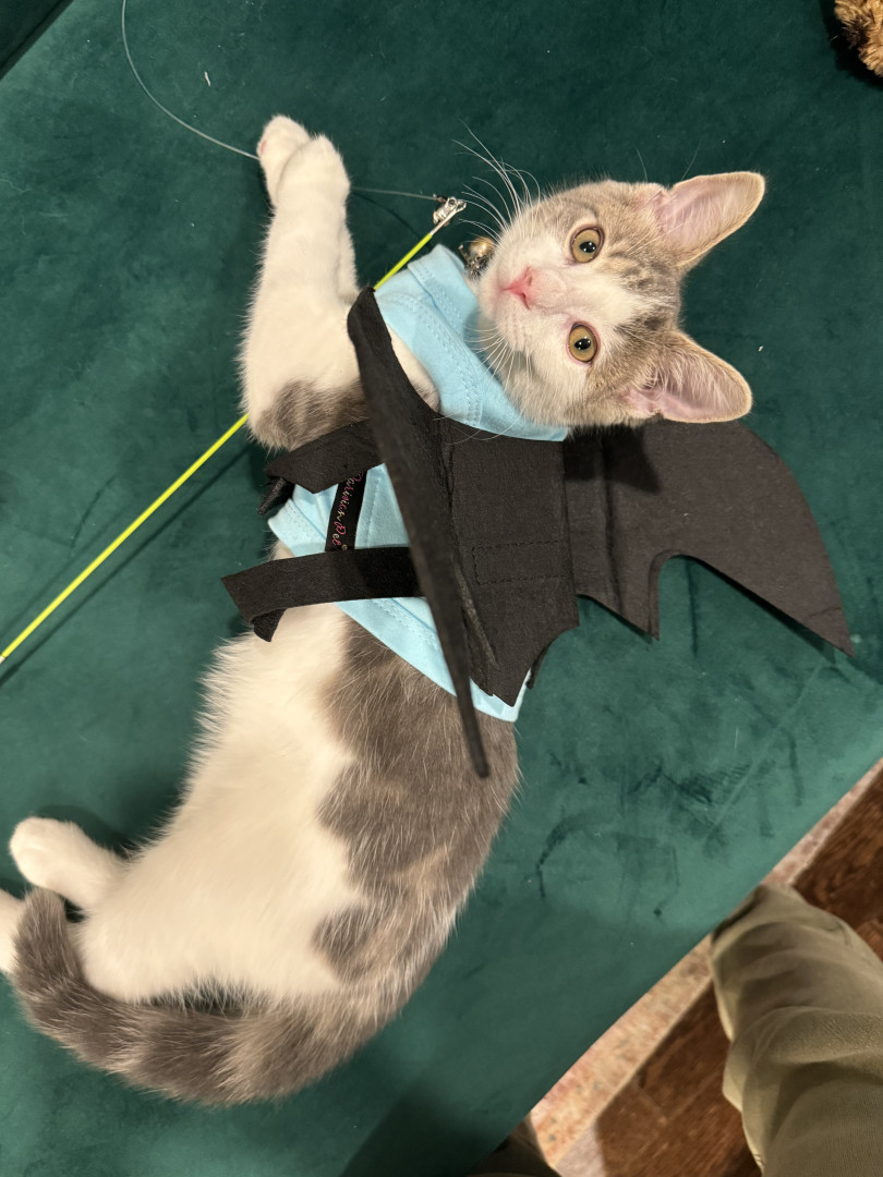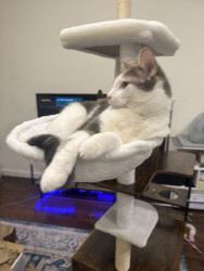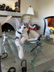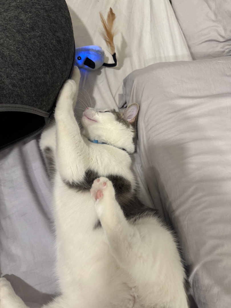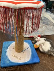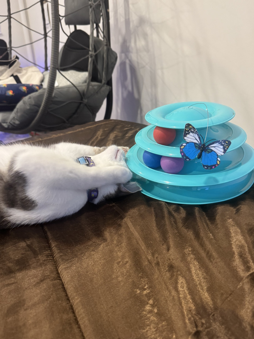 Receive Text UpdatesIn a world where most cats nap… Zeus rises. His favorite toy, the spring, sends him sprinting like a four-pawed action star defying physics. He blasts after every throw like a 12 pound missile. He fetches it back each time with a superhero strut & drops it at your feet gazing "again". The string treadmill is where he becomes caffeinated jaguar embracing chaos. Nothing crowns his triumph like Purrsticks & Churus. Devoured like fuel of a rising feline champion America can’t help but root for.