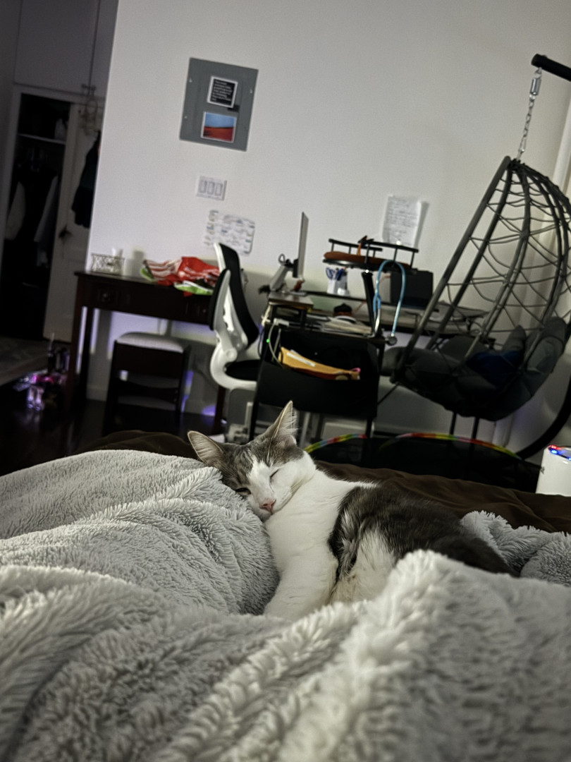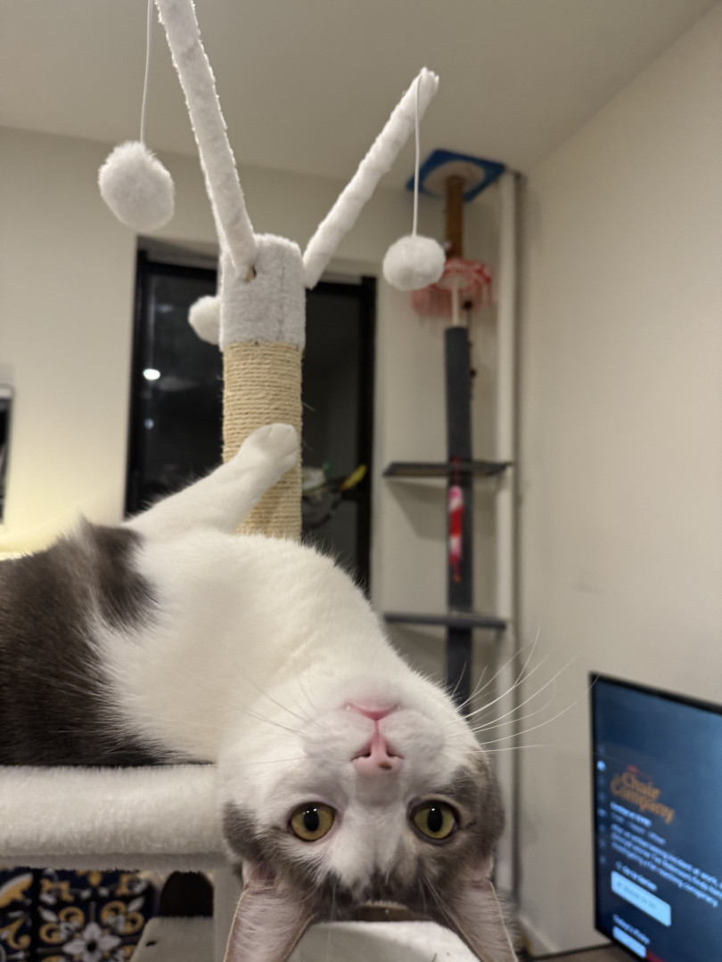 Zeus isn’t a pet—he’s a presence. He greets every guest at the door, even total strangers, with the confidence of a tiny host who owns the place and wants to make you a mojito. People are stunned because while most cats hide, Zeus steps forward. His gaze is deliberate, his gestures purposeful, and his personality unmistakably human. Nothing he wants stays a mystery—he makes it known. Zeus isn't just living life—he’s running it like a boss. Im just along for the ride.