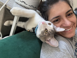 pro spring-fetcher, FBI agent (Feline bureau of investigation), social butterfly, mommy’s boy, mojito cat, golden retriever in feline body.