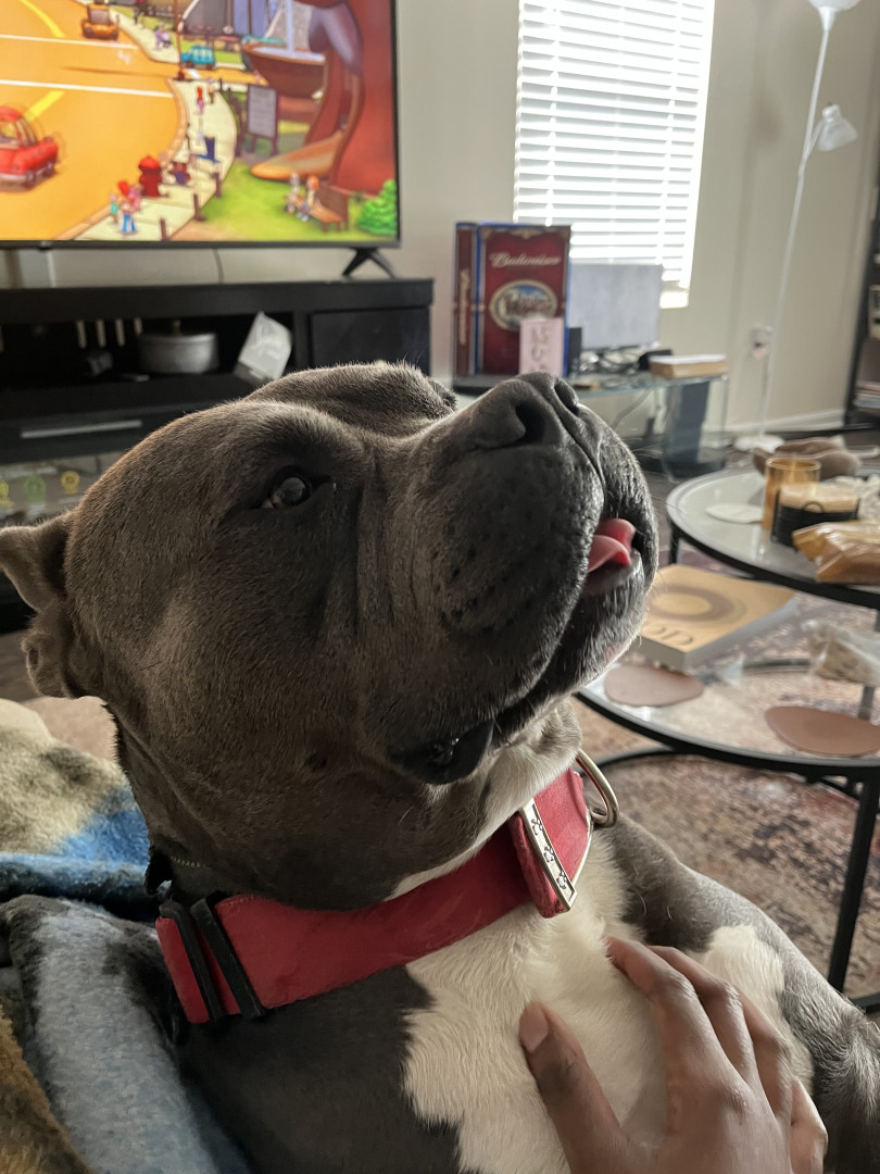 Well outside of him having the largest head I’ve seen on a dog, Zeus has a thing for verbal interaction lol. If you’re speaking to him, he tries his best to understand what you’re saying, gives great eye contact, and responds with sound. He thinks he’s human most of the time!
