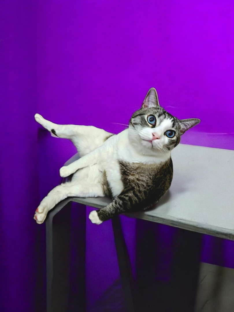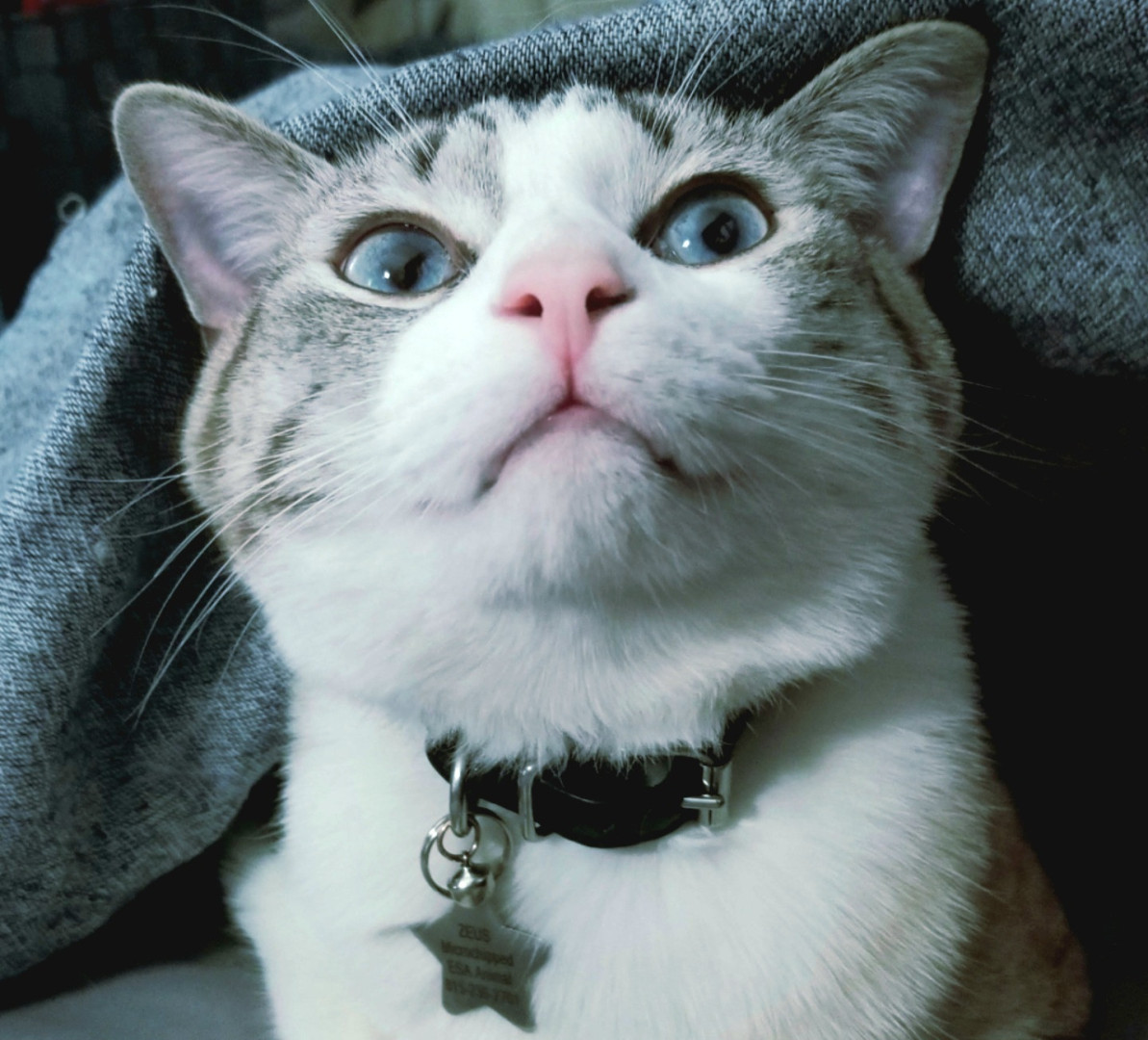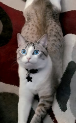 Zeus is a goofball comedian Lynx Point Siamese boy with the most beautiful blue eyes who is my favorite therapist.