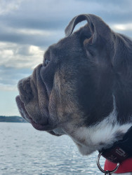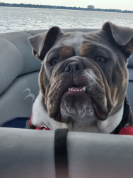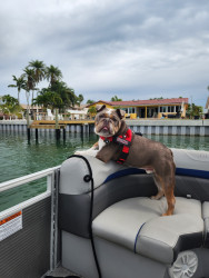 Zeus is a rescue who stole our soul with his underbiting smile! He's a foodie who is part Tazmanian Devil & part Cupid who loves boatin