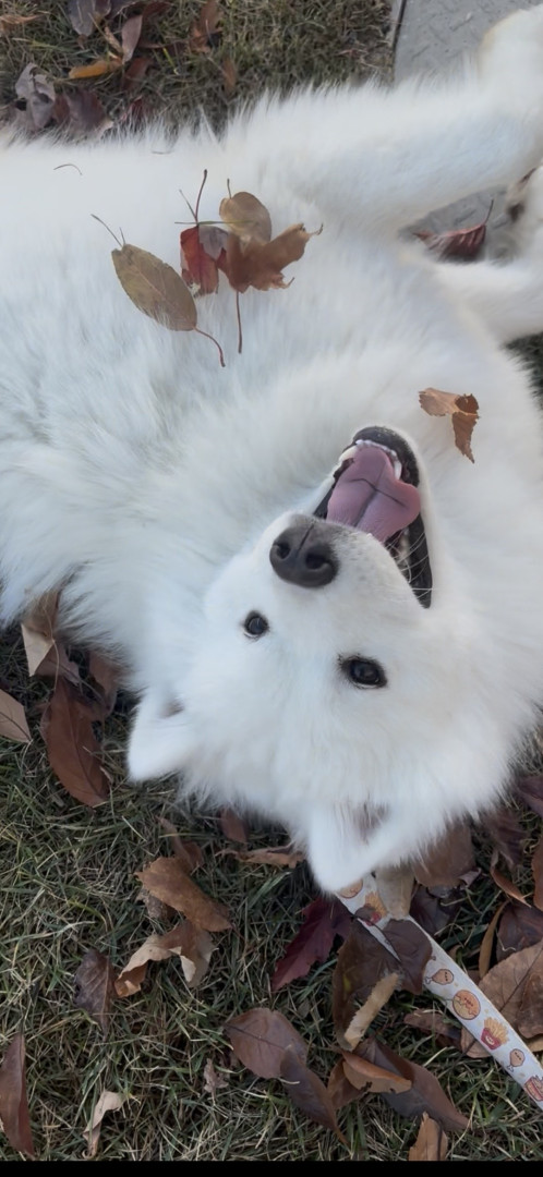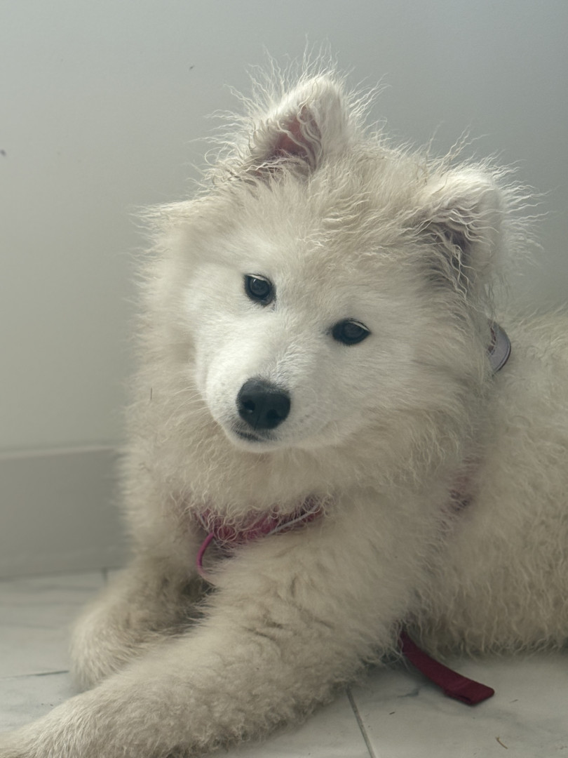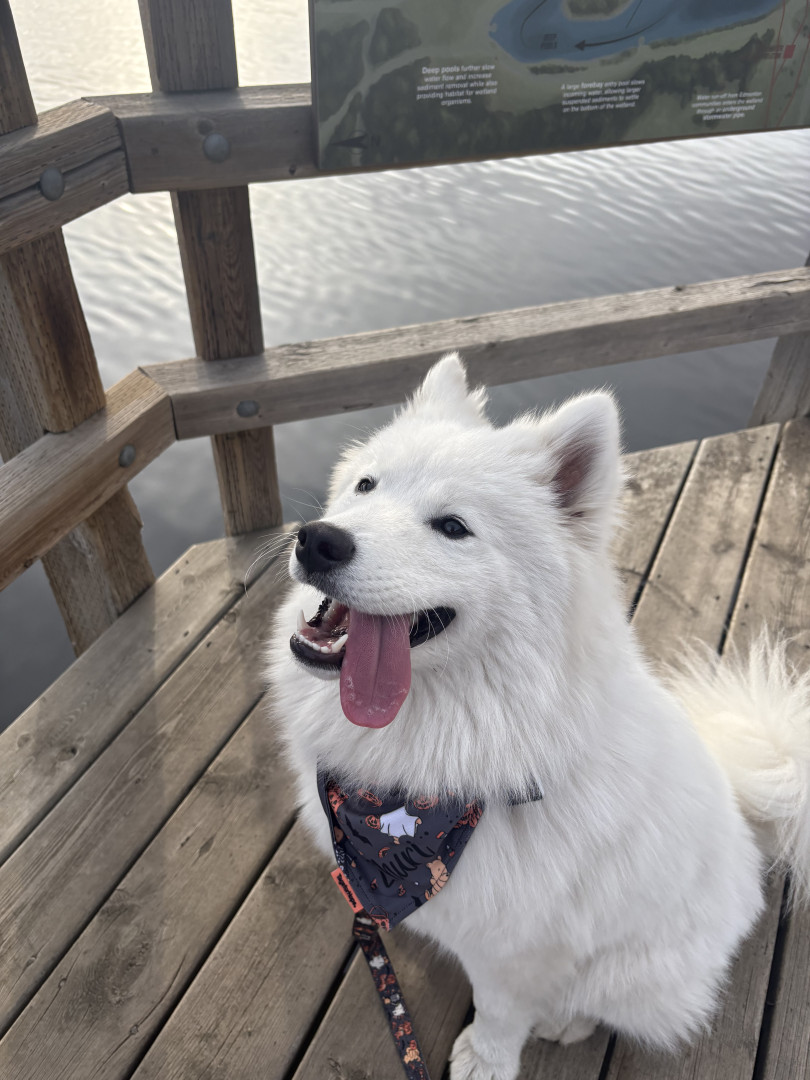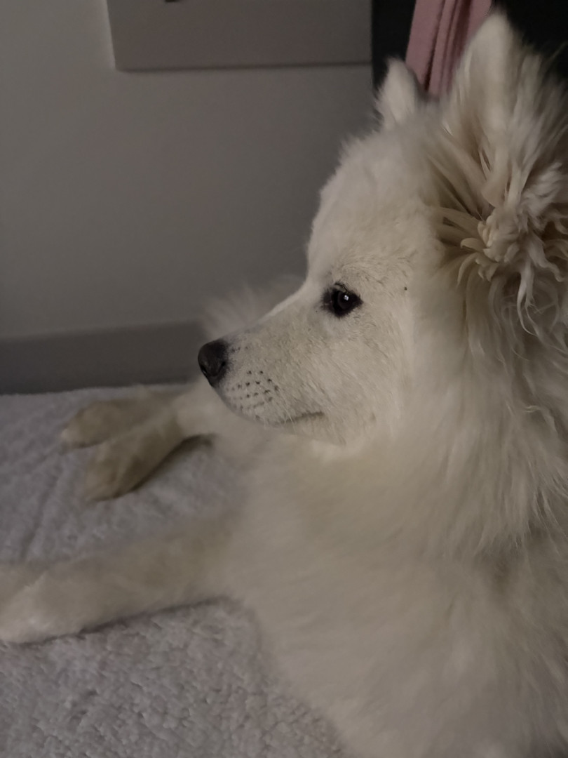 Zhuri’s most unique quality is how she will lay down on her bed and binge watch shows with me. Her favorite shows to watch are Grey’s Anatomy and SWAT. She can sit outside for hours without barking when people watching. (Very rare because Samoyeds are generally very vocal) She also loves to pose and have her picture taken. A true model.