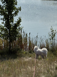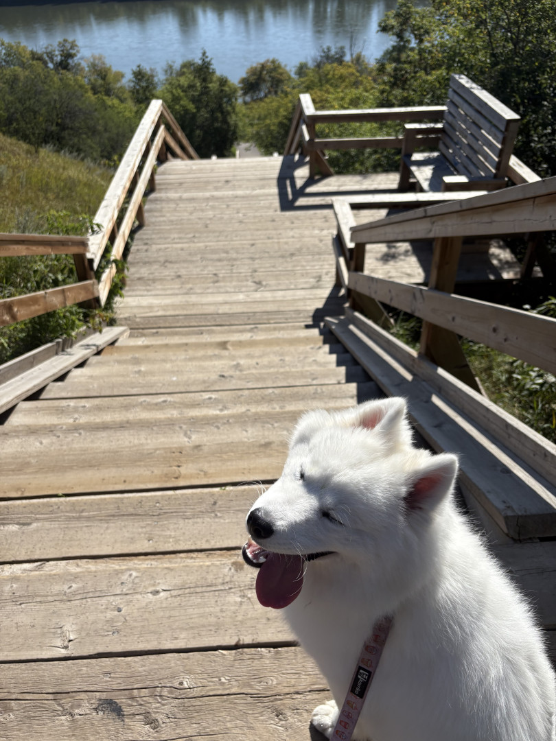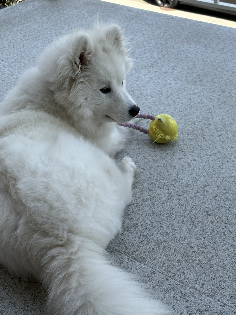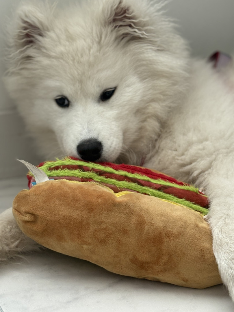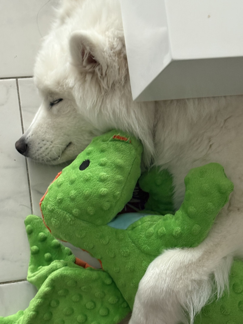 Zhuri’s most unique quality is how she will lay down on her bed and binge watch shows with me. Her favorite shows to watch are Grey’s Anatomy and SWAT. She can sit outside for hours without barking when people watching. (Very rare because Samoyeds are generally very vocal) She also loves to pose and have her picture taken. A true model.
