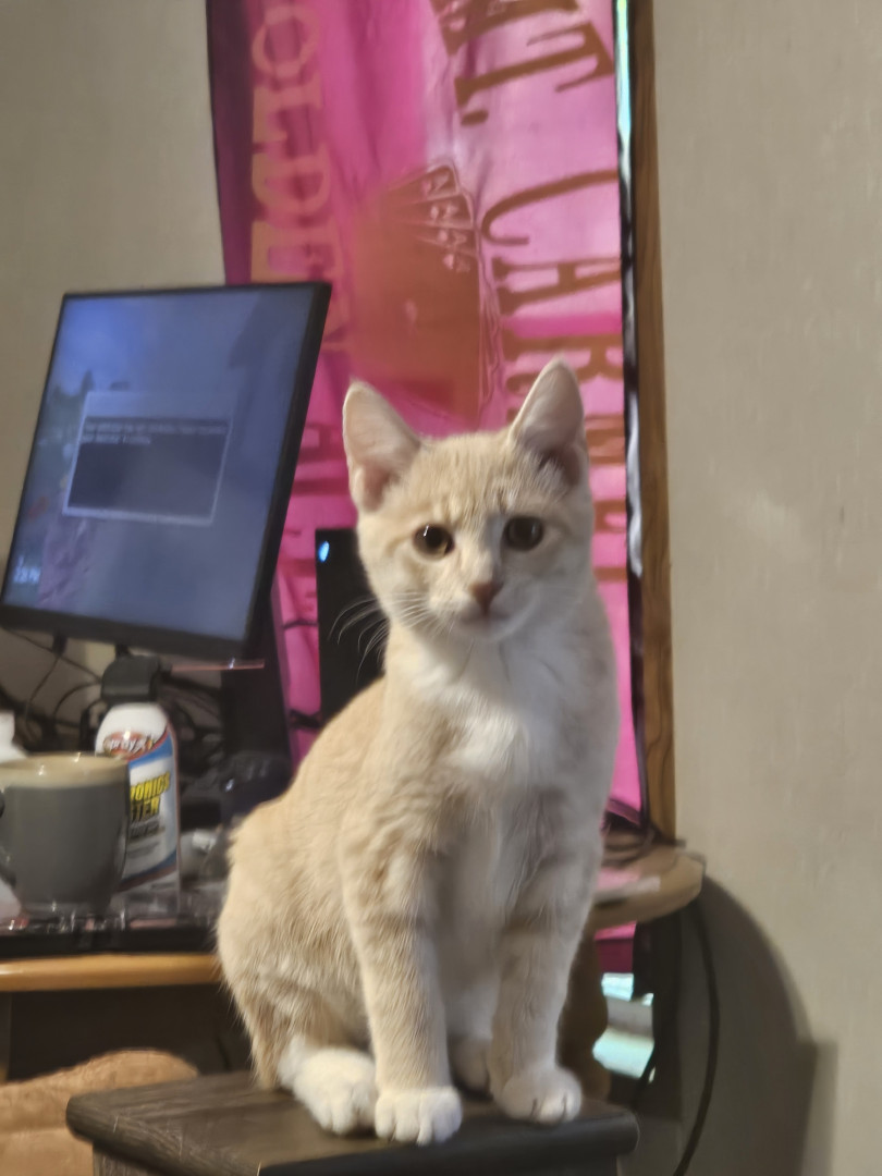 Ziggy is a blonde male stray cat which our family took in to love. Hes cute, at times cuddly and loves his toys and is acrobatic.