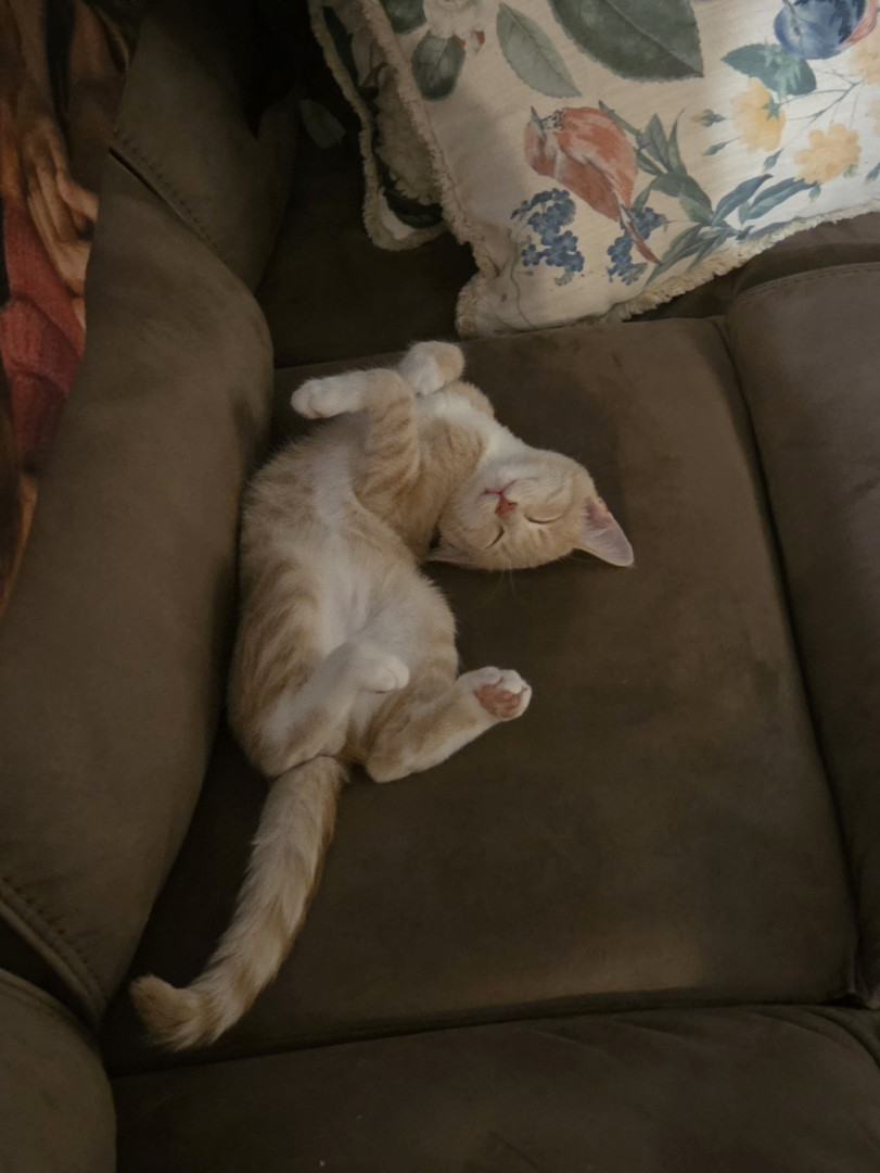Ziggy's most unique quality is the way he loves his mom. Ziggy likes when she holds him like a baby or at least until hes done being held like one lol. At times he closes his eyes and kind of falls asleep. He really is a great kitten.