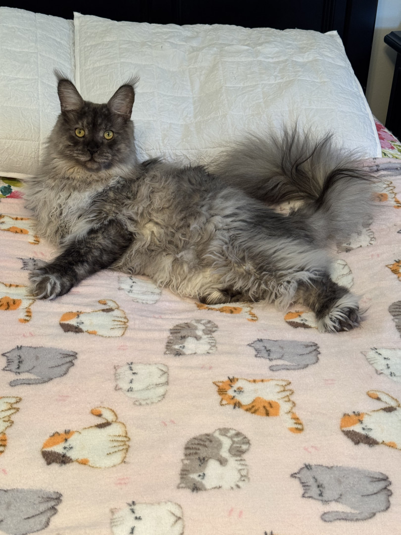 Ziggy the Maine Coon is my silly goose. He’s 2 years and 25 lbs of mischief and joy! I love him so much. He is the purrfect companion!