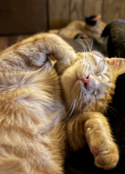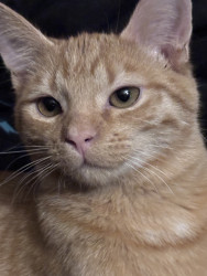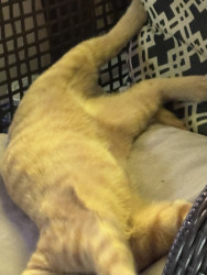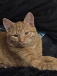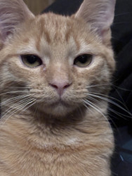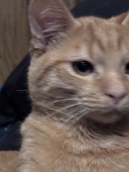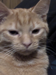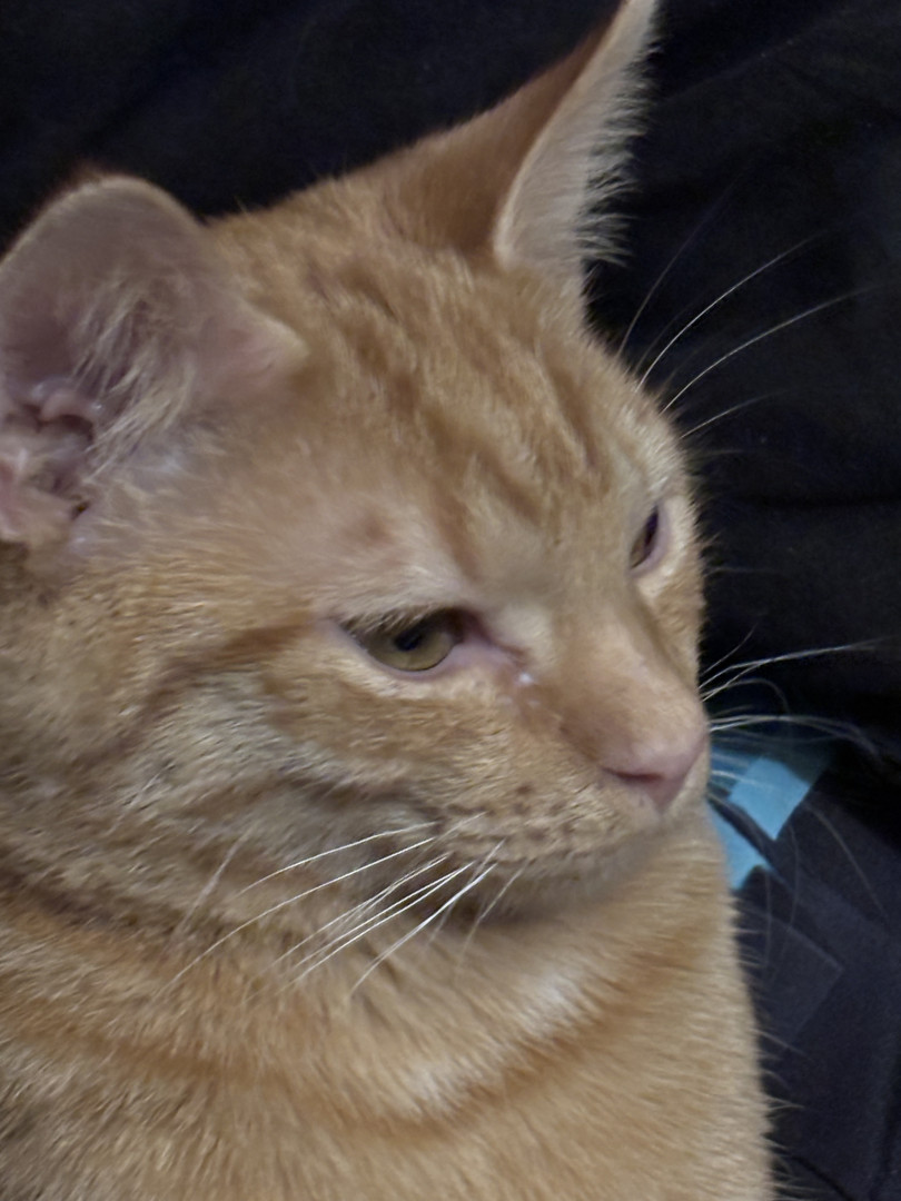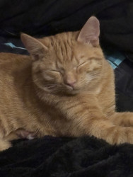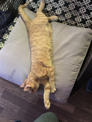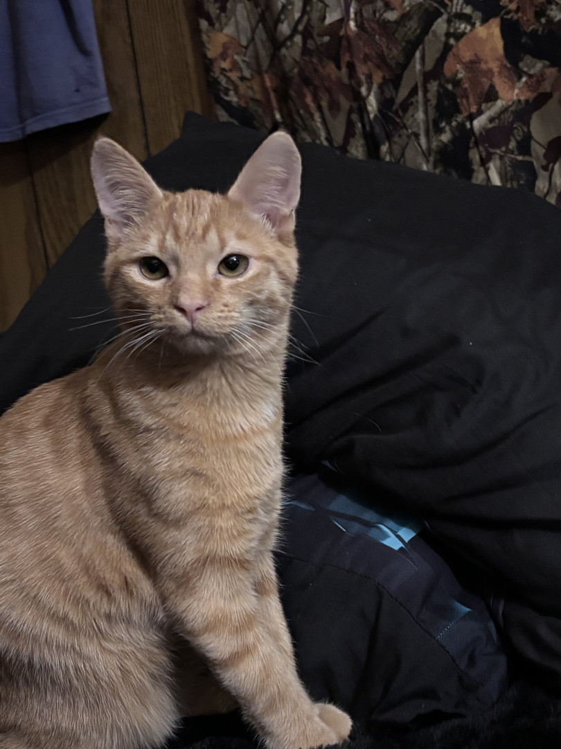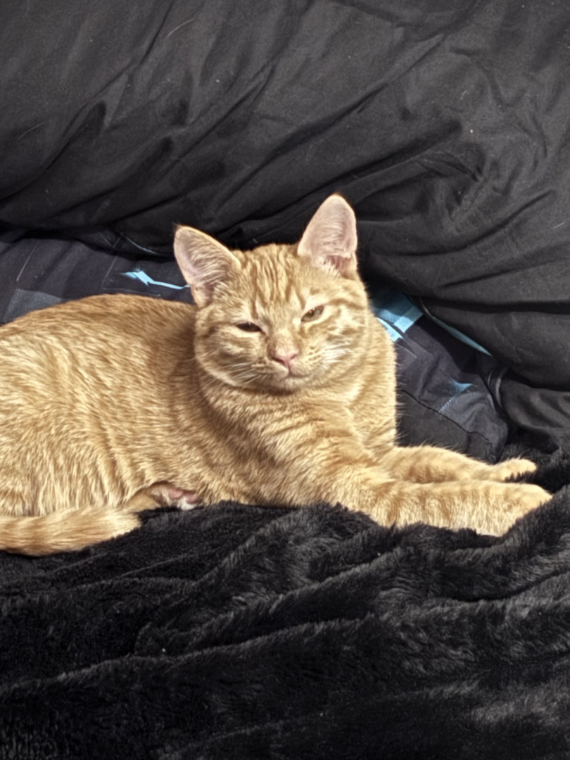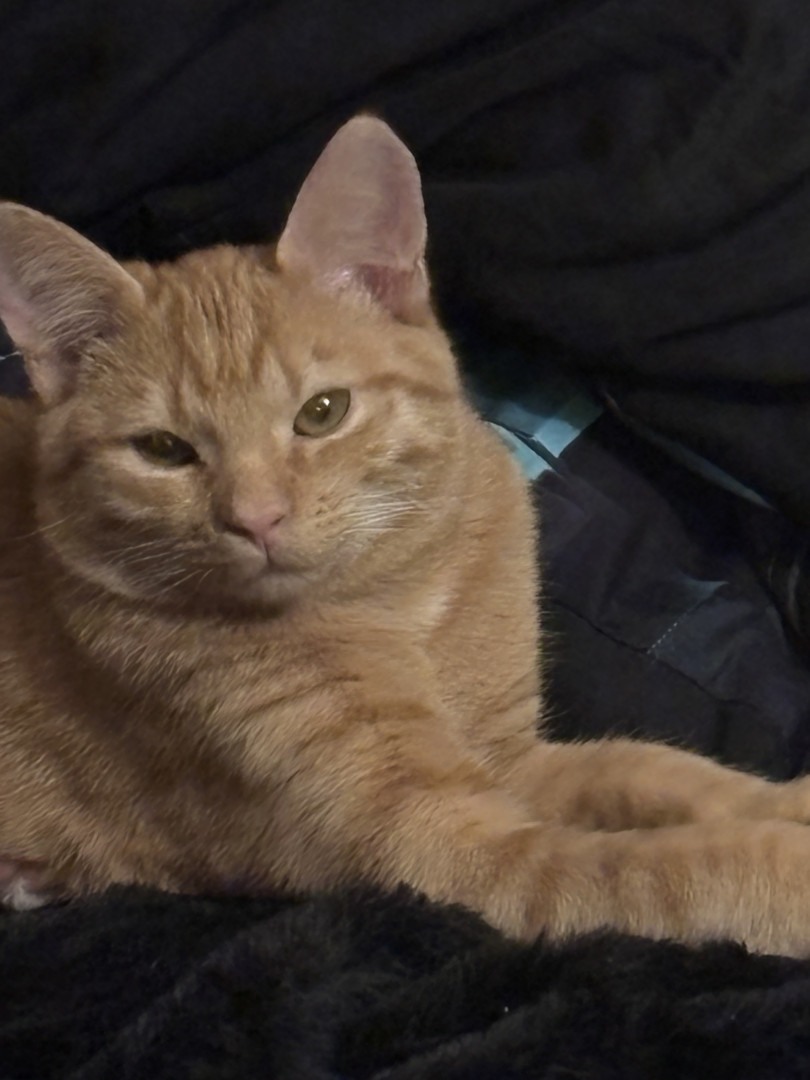 She was a rescue cat. I found her on a job site nothing but skin and bones. I had a pack of tuna in my bag. I opened it up. She went ham on it. I got her a little bowl of water for our orange cooler. You should’ve seen how she was taking all that in she hasn’t had any in a while so I wrapped her up in my flannel shirt and brought her home and ever since then nothing but a fat cat with a lot of love she loves doing tricks for treats