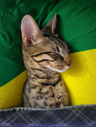Zion should be America’s favorite cat because he represents the very best of what a companion animal can be. As a Savannah cat, he combines striking beauty with remarkable intelligence, but what truly sets him apart is his connection to people. Zion actively seeks human presence, forms deep bonds with his family, and shows an instinctive protectiveness toward those he loves—especially children. He is endlessly curious and playful, always inventing new ways to turn ordinary moments into fun.