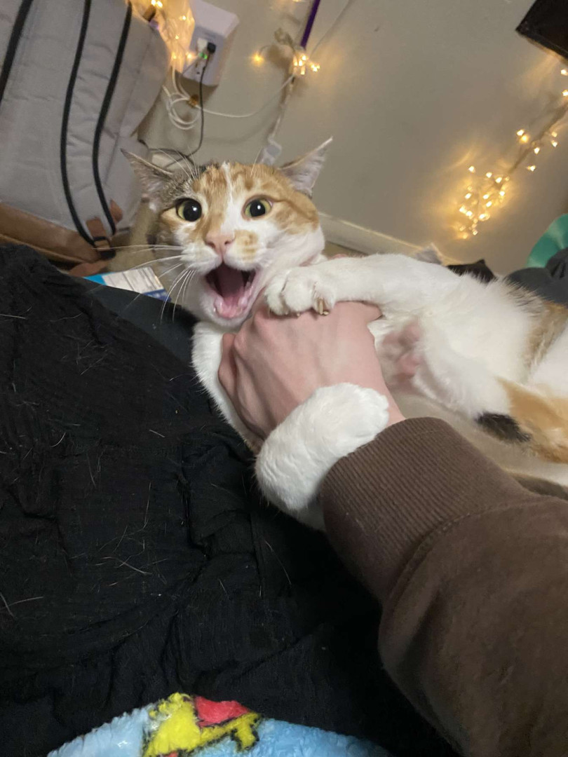 Zira is a very sweet girl but only has 1 brain cell. She spends her day running around meowing at walls, climbing on things, and cuddling