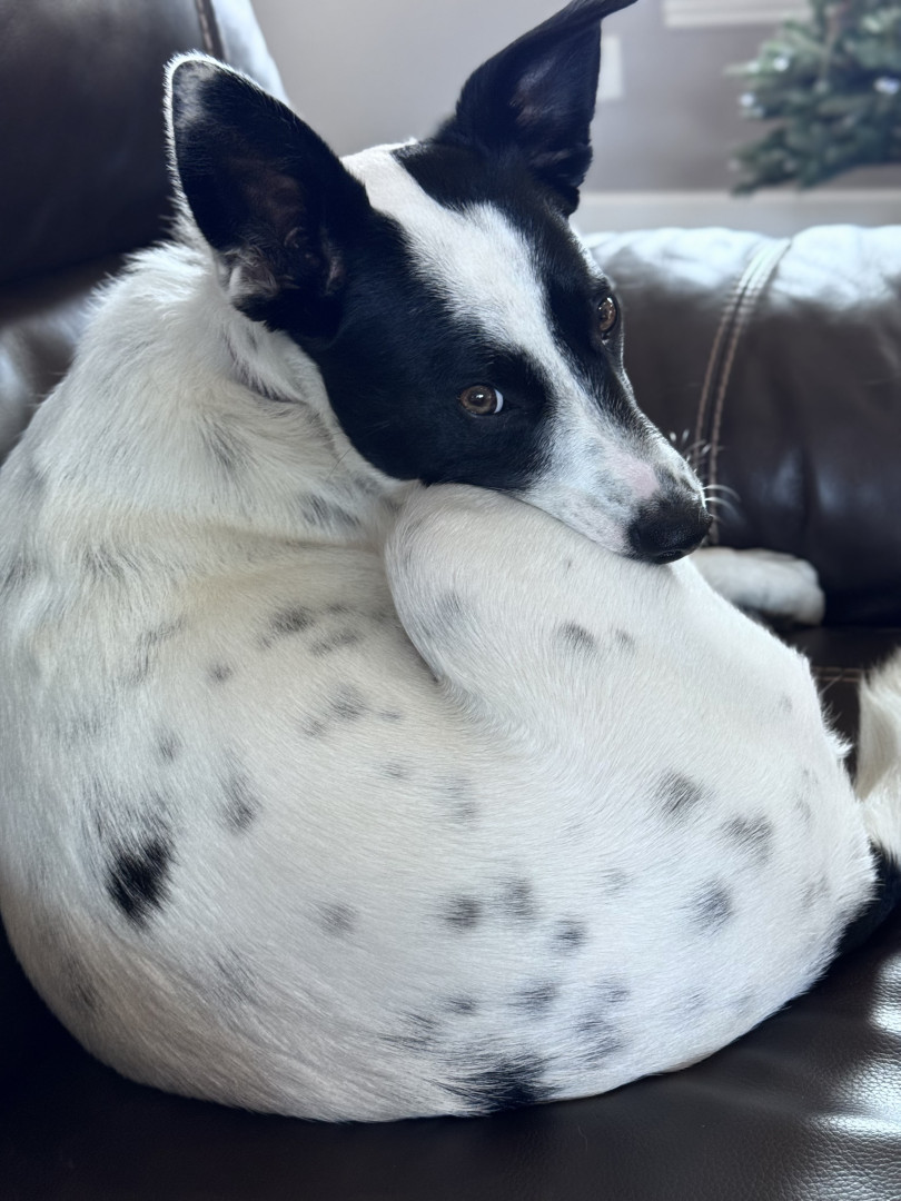 We rescued Ziva from our local shelter. She was very shy when we brought her home. Now she is playful, loves to play fetch and loves to be around people. She is very unique.
