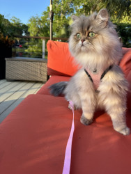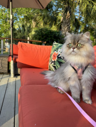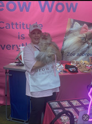 Learn MoreZoe loves to play with anything that is fuzzy, and often steels my fuzzy pompom keychains that I sell in my pop-up shop. Her second-favorite toy would be anything with feathers! Her favorite snack is a chicken “licky stick”, she goes crazy over them! She travels the state with me in a motorhome that I bought her and makes an appearance at each show that I am a vendor at. People take pictures with her, and buy her T-shirts that I make.