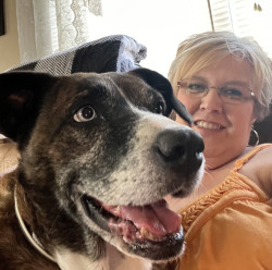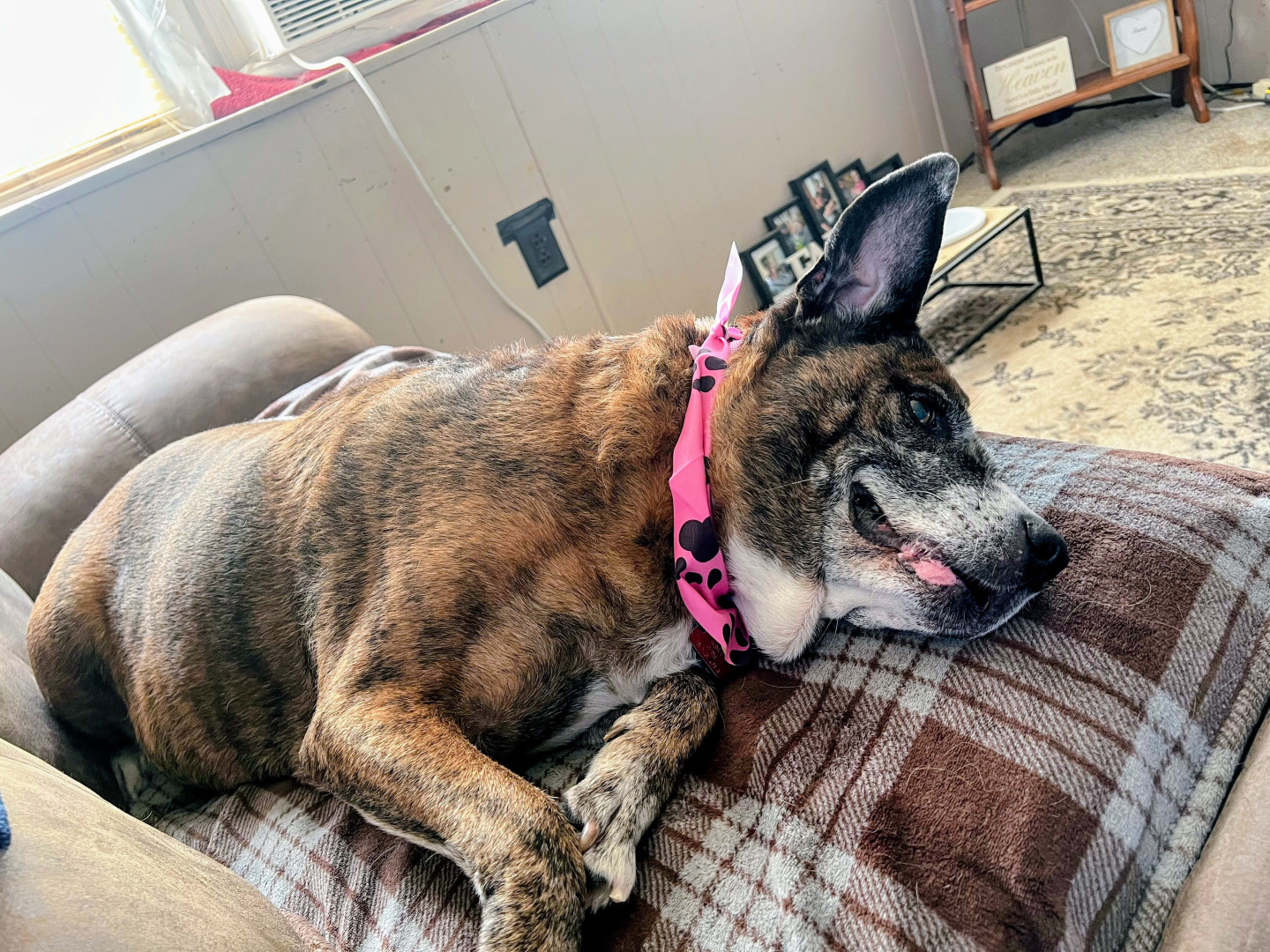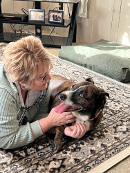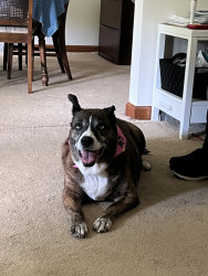 Zoe is the most friendly, loving, playful dog. Will learn any new trick to get a treat and she she LOVES to walk to Grandma & Jedo’s house.