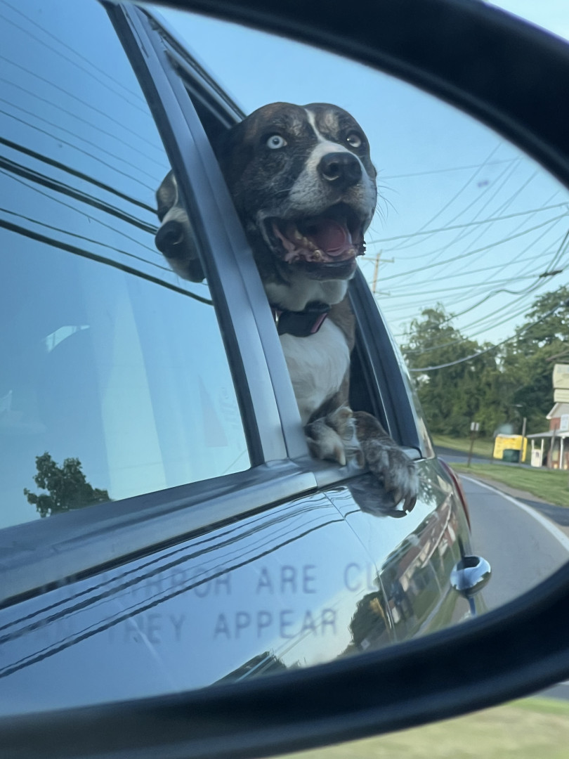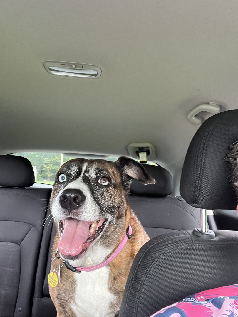 Zoe can make everyone smile. Especially when you look at her eyes, one is baby blue and one is half baby blue and half brown. She can warm your heart just looking at her. And can put a smile on your face even your feeling down. She loves us just as much, if not more, then we love her. And if you mention you’re going somewhere and let her go with you and stick her head out the window the whole ride, she will love you even more.