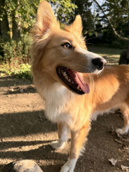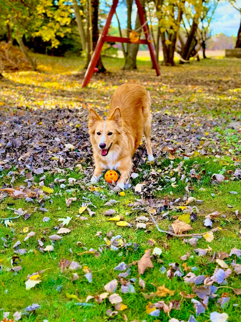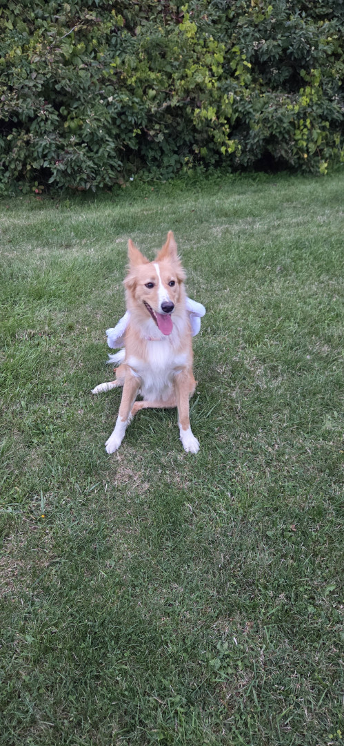Loving girl, likes all animals, loves to chase squirrels, hates baths so much that when she gets out she has zoomies
