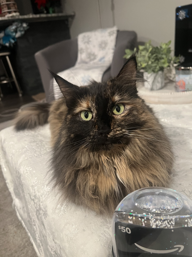 Zoey is a beautiful tortoiseshell with a big personality and an even bigger heart. She’s incredibly playful and can usually be found climbing her cat tower, zooming through her tunnel, or chasing her noisy balls and catnip toys. When playtime is over, Zoey knows exactly what she wants — her favorite Delectables treats! Sweet, silly, and full of joy, Zoey brings smiles wherever she goes. Playful. Lovable. Unforgettable. Zoey isn’t just a cat — she’s America’s favorite in the making! 🐾❤️🇺🇸