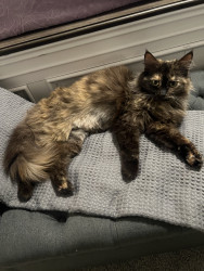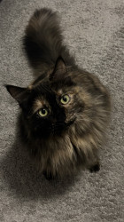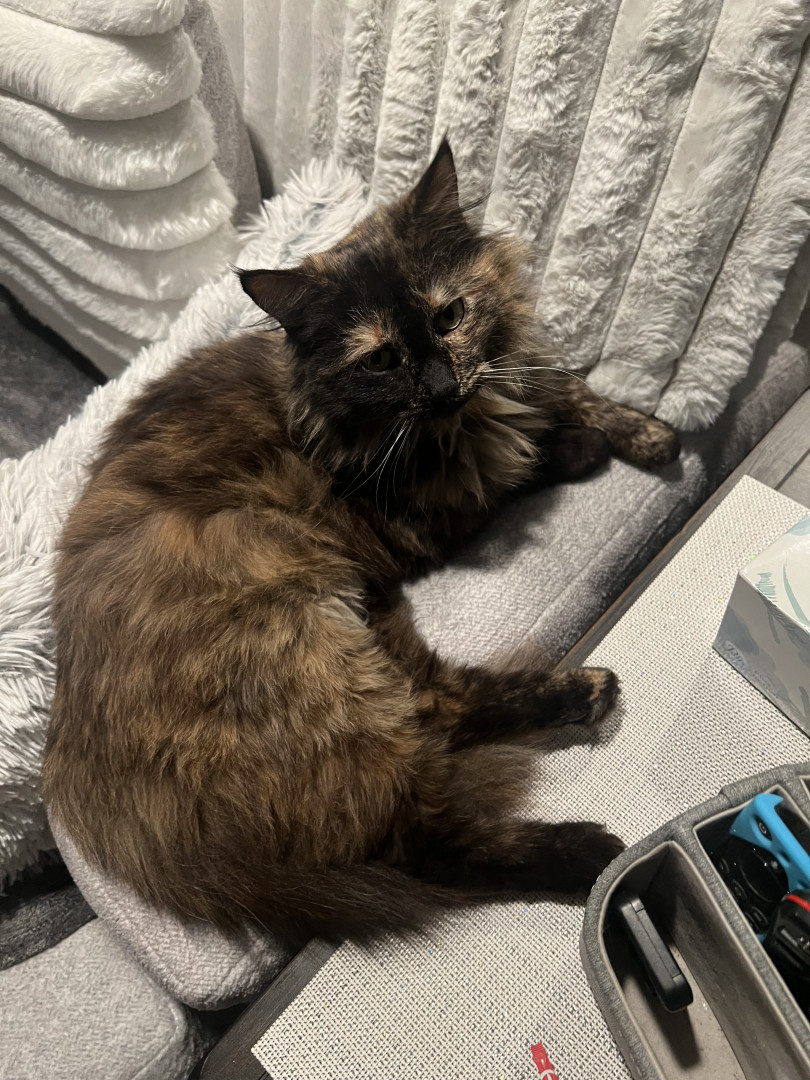 Meet Zoe, a beautiful tortoiseshell cat with a personality as vibrant & unique as her markings. With her soft coat & beautiful green eyes.