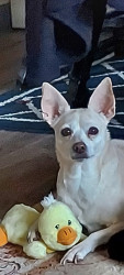 Miss Zoey loves Milkbone mini cookies and her favorite toy is a blue stuffy.