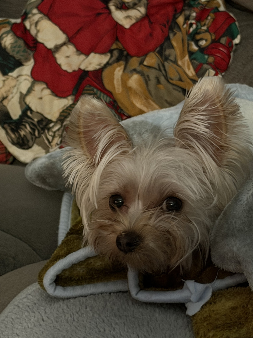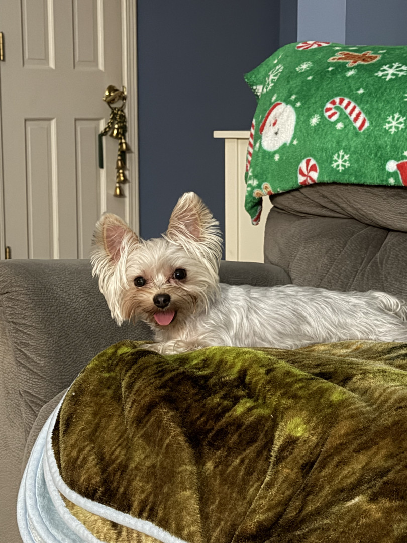 Zoey has a loving and glowing personality. She never meets a stranger and brings joy to all around her. Zoey even attends choir practice each week with me and the choir members adore her. They even think she needs a miniature choir robe! For sure this little 6 pound little girl will steal the hearts for all that meet her!