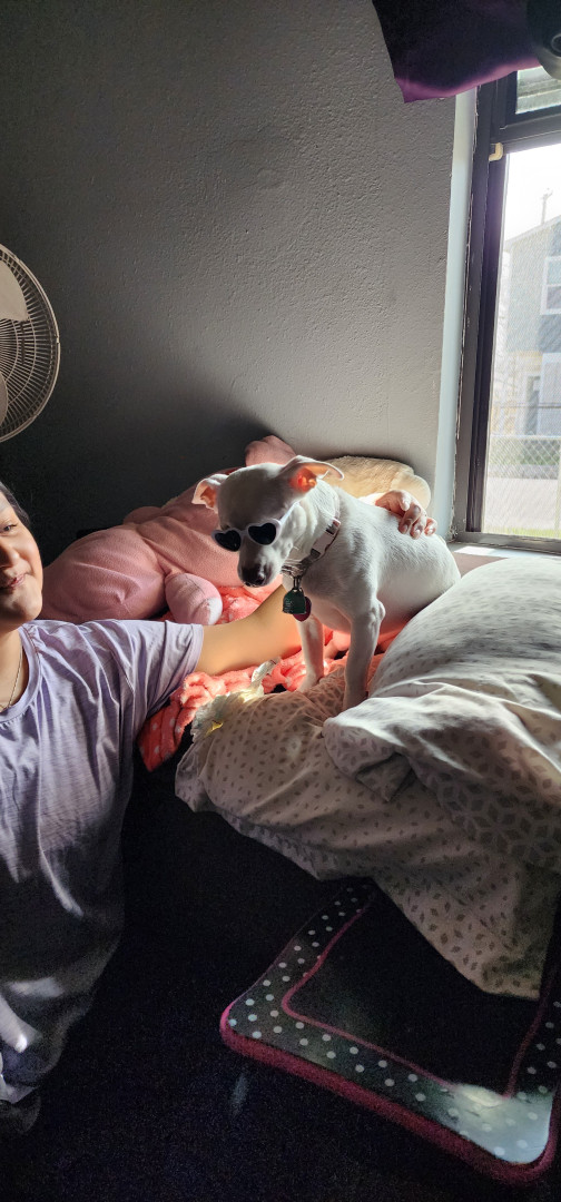 Zoey is a 3-year-old terrier mix adopted at 1 from san antonio Humane Society, she chasing balls, and brings joy to everyone she meets.🩷