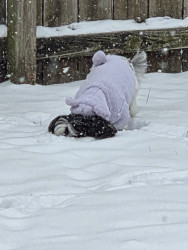 The various side eye looks and the talking back at me when i am working to much or she wants to go to bed. She gets dirty on purpose at doggie daycare becaaue she loves to run in the mud and snow.