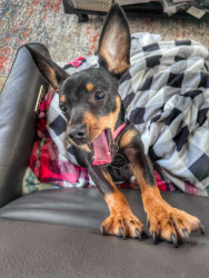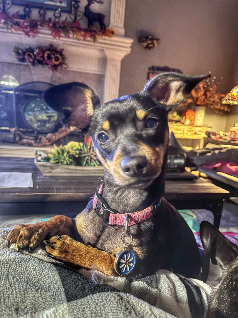 She warns her pet parents of all animals she sees on TV as if they were right in the room with all of us. Plus her ears that at anytime can be both up, one up with one down or both down.
