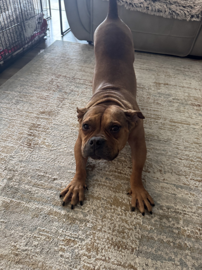Zoey is a survivor! Found as a stray, severely malnourished, hernia, screws, nail and metal shavings in her stomach. Miraculously survived